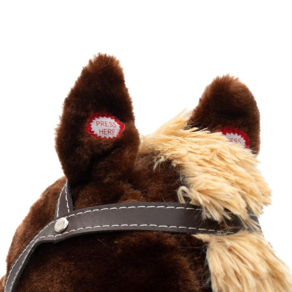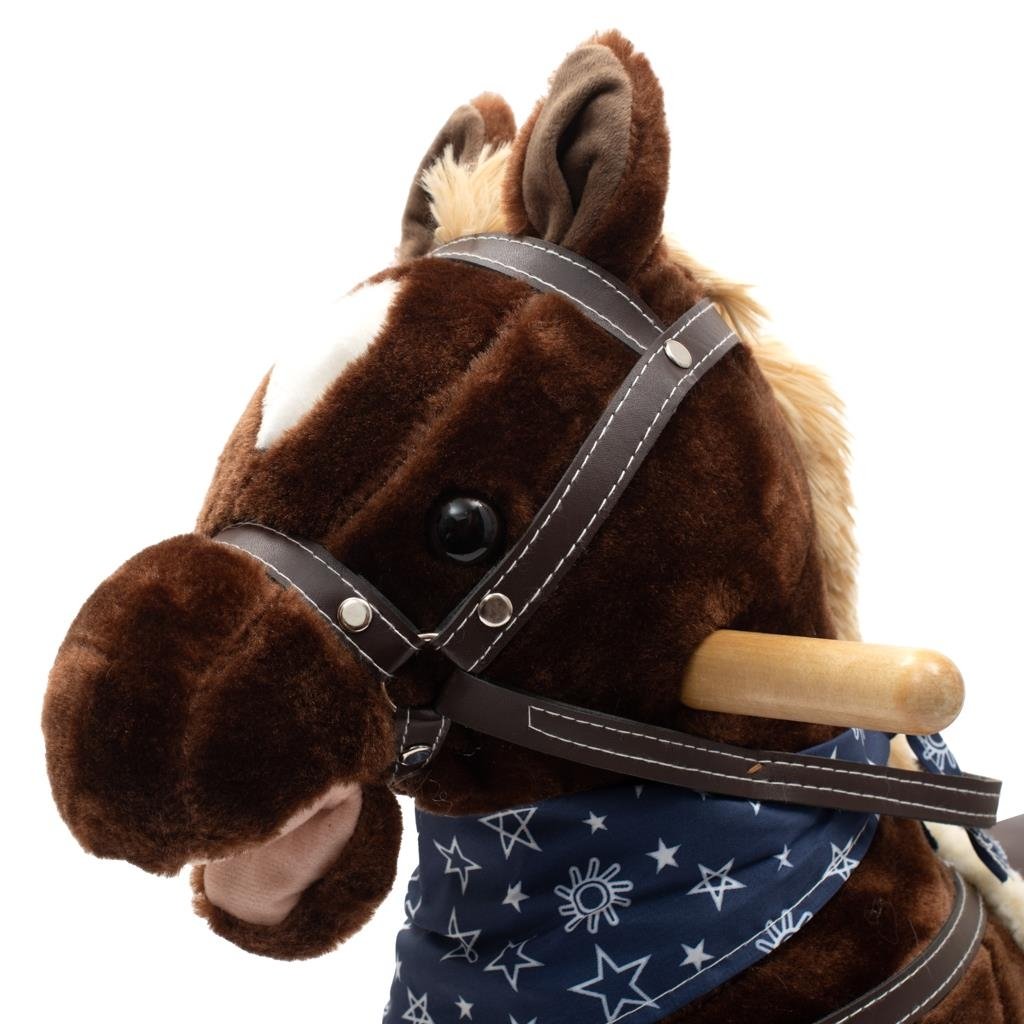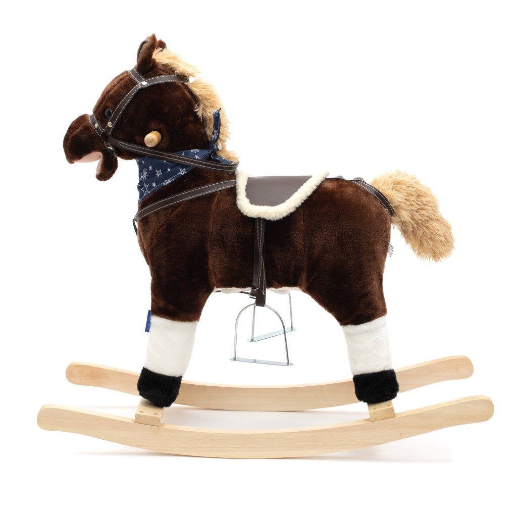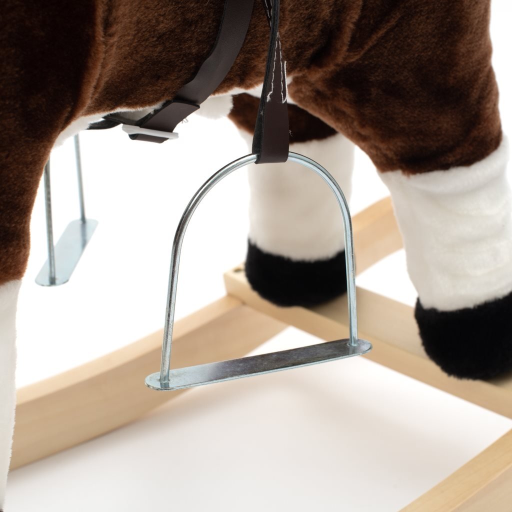 Měkoučký houpací koník Baby Mix byl navržen pro děti, které mají rády dobrodružství. Vypadá jako opravdový, takže se vaše dítě bude cítit jako skutečný jezdec. Koník je vyroben z měkkého plyše, kolem krku má ozdobný šátek a je vybaven dřevěnými houpacími lištami, jejichž profil chrání dítě před převrácením. Pohodlné sedlo, pevná uzda, kovové třmeny, dřevěné rukojeti a stabilní houpací lišty zajistí vašim kovbojům ještě větší stabilitu a pohodlí během houpání. Je vyroben z měkkého plyšového materiálu, pevné dřevěné lišty nebo rukojeti lze snadno odšroubovat. Po stisknutí tlačítek na ouškách koník vrtí ocáskem, hýbe tlamičkou, ozvou se zvuky cvalu, koník zařehtá a zazpívá kovbojskou písničku. Tři potřebné baterie AA 1,5 V se vkládají do pouzdra umístěného na bříšku koníka a nejsou součástí balení. Během houpání se dítě učí koordinovat pohyby svého těla s koníkem, což zlepšuje celkovou rovnováhu a motoriku dítěte.