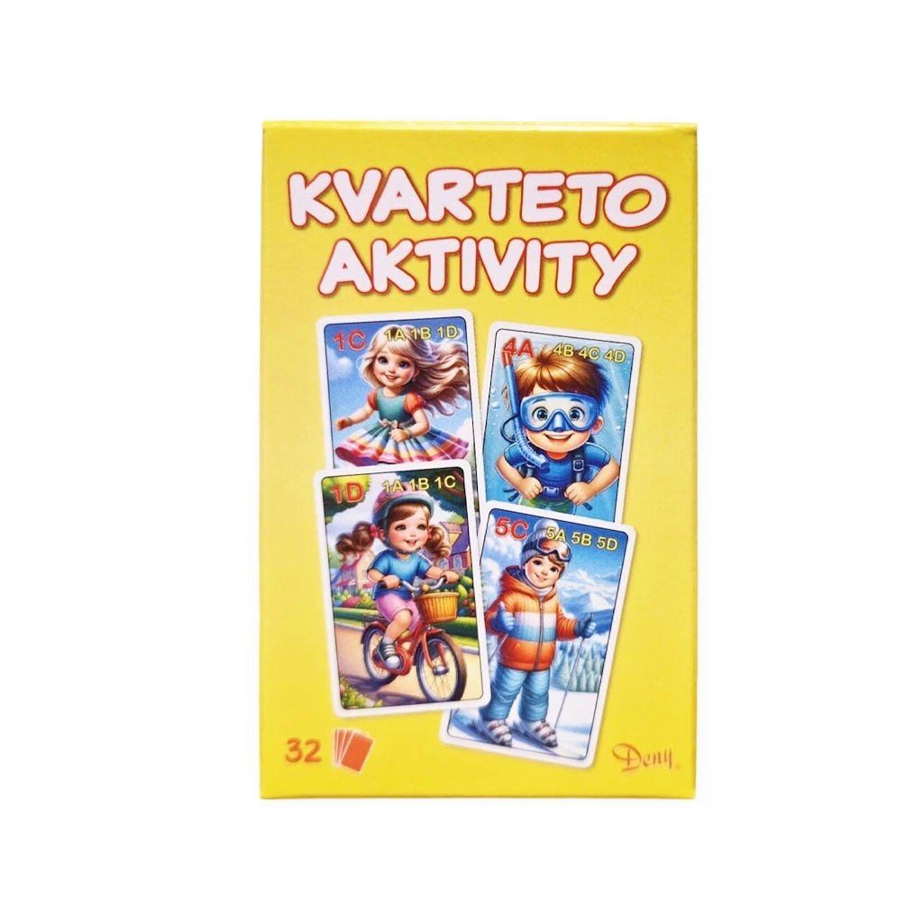 Hra Kvarteto Aktivity je karetní hra pro 3 až 6 hráčů, v balíčku je 32 ks obrázkových karet. Cílem hry je vytvořit z karet kvarteta. Součástí balíčku je i návod SK / CZ.