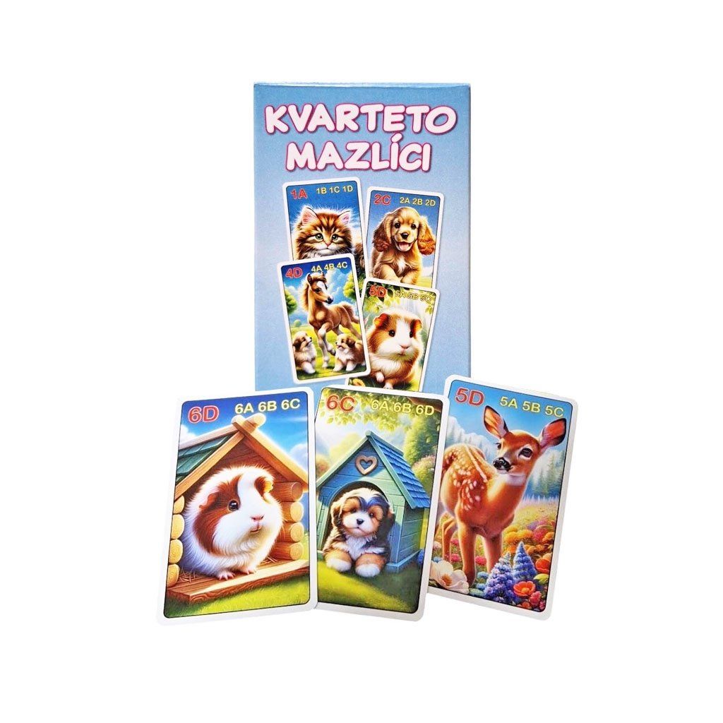 Hra Kvarteto Mazlíci, sada 32 ks hracích karet s krásnými obrázky zvířátek na hru kvarteta. Hra je určena pro 3 až 6 hráčů.