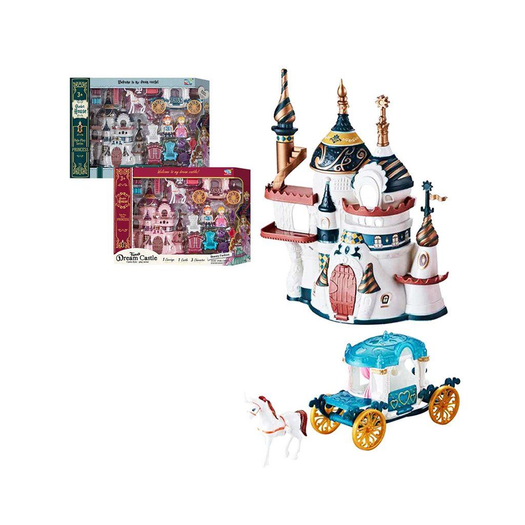 Hrad snů s kočárem, v ytvor si svou vlastní pohádku s královskou rodinou, hradem a kočárem. Balení obsahuje hrad s padacími dveřmi, kočárkem, dvě figurky a nábytek. Možnost výběru ze dvou barev. Má rozměry 18,5x21,5 cm. Cena je za kus. Vhodné od 18 měsíců.Doplňkové parametry