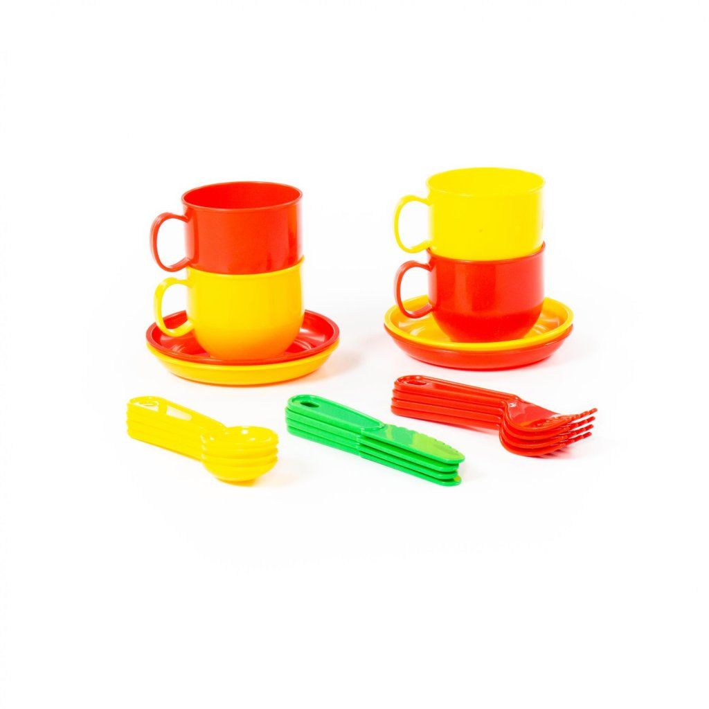 V balení s podnosem je 4 ks talířků a šálků s kompletním příborem 4x / lžička, vidlička, nožík /, balení v síťce.Doplňkové parametry