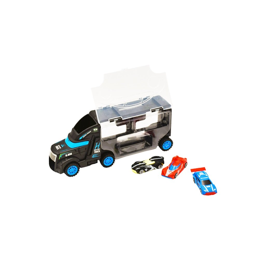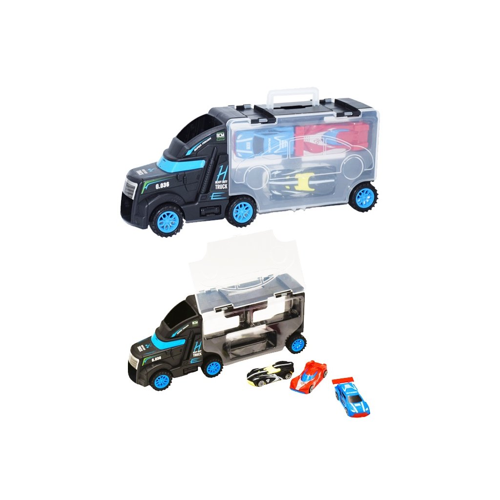 Polož autíčko na kabinu kamionu a sleduj jak jí projede. Když si dohraješ nebo si chceš autíčka odnést se sebou, odlož si je do kamionu. Balení obsahuje kamion a tři autíčka. Nevhodné pro děti do 3 let.Rozměr kamionu - 28 x 7cm