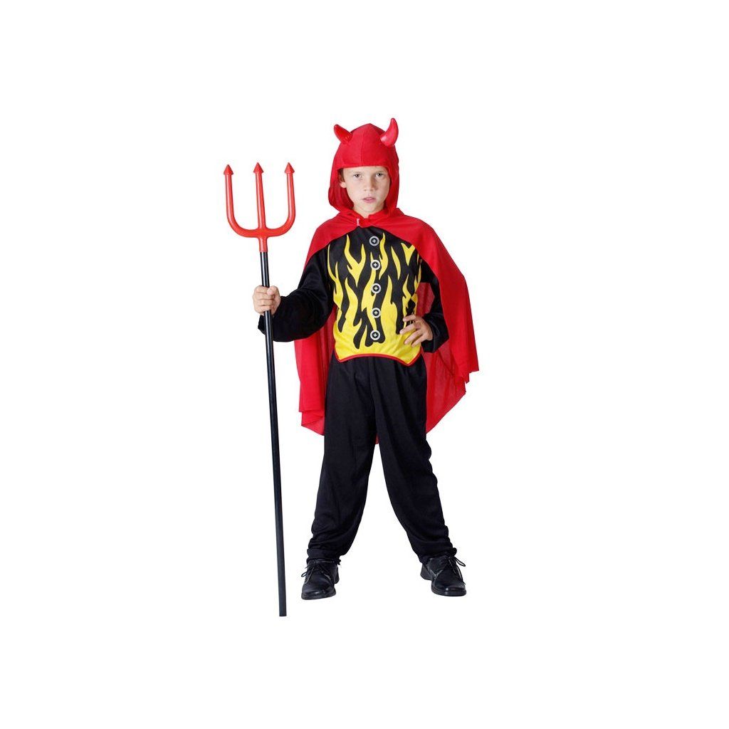 Karnevalový kostým Čert, pro děti s výškou 120 - 130 cm. V balení naleznete: košili, kalhoty a plášť s kapucí Neobsahuje: vidle a boty.
