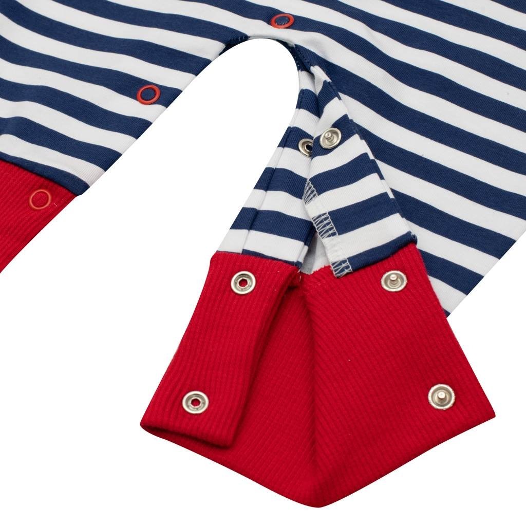 Letní bavlněný overálek české značky New Baby Marine pro miminka. Overálek je celopotištěný moderními pruhy s krásnou nášivkou lodičky. Nášivka je podlepená látkou proti poškrábání. Zapínání na ramínku a mezi nožičkama usnadňuje oblékání a přebalování miminka. Pro miminka je overal důležitým kouskem oblečení a při jakémkoliv pohybu jsou zádička miminka stále přikrytá. Složení: 100% bavlna.Doplňkové parametry