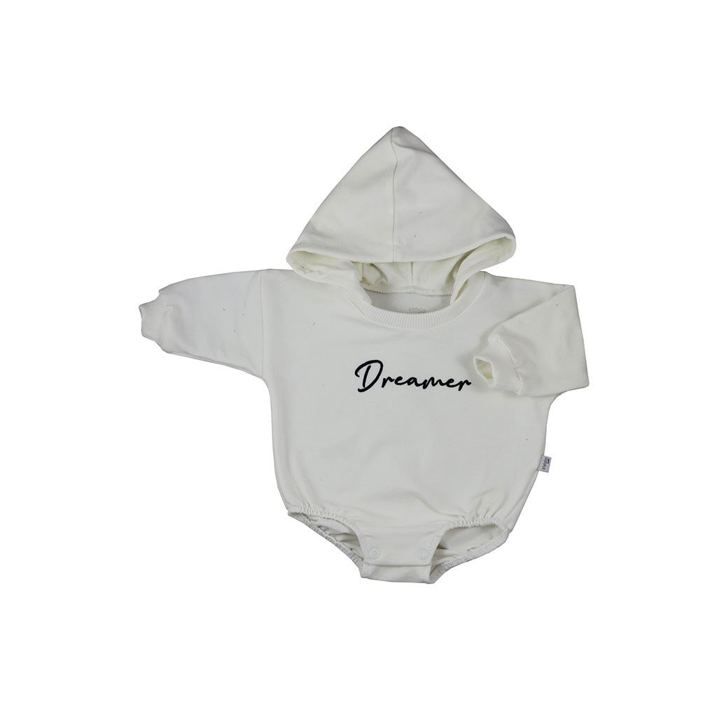Nápadité body s dlouhým rukávem a kapucí Koala Dreamer. Body má zapínání na cvočky mezi nožičkama což usnadňuje oblékání a přebalování. Okolo krčku je pružný lem pro snadné oblékáni přes hlavičku. Je zdobeno nápisem Dreamer a je ušito ve stylu baggy z velmi příjemné teplákoviny. Body je pro miminka důležitým kouskem oblečení. Při jakémkoliv pohybu jsou zádička miminka stále přikrytá. Materiál: 96% bavlna, 4% elastan.Doplňkové parametry