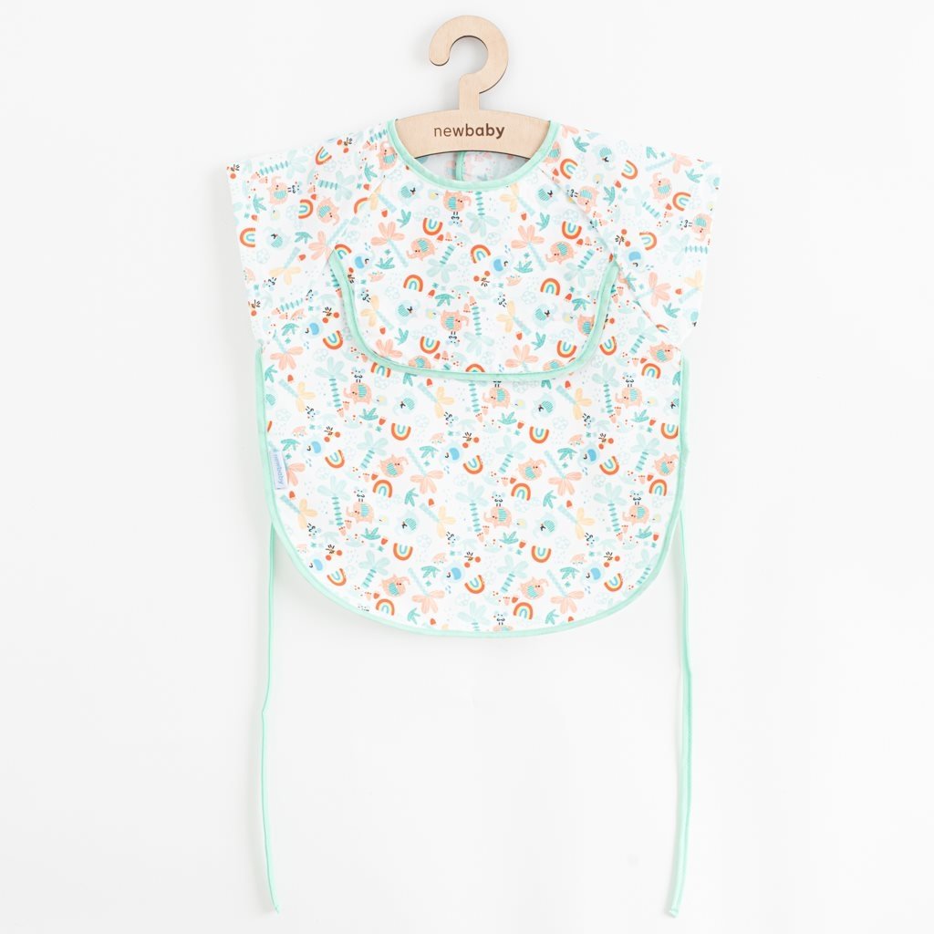 Dětský bryndák-zástěra New Baby účinně ochrání oblečení vašeho dítěte před ušpiněním při jídle a hraní. Vyrobeno z lehkého a měkkého materiálu. Bryndáček má pohodlné zapínání na suchý zip a praktickou kapsu. Bryndák je ušitý ze dvou vrstev materiálů. Spodní vrstva je z nepromokavého materiálu. Při zašpinění lze bryndák otřít vlhkým hadříkem, nebo prát v pračce. Charakteristika- pohodlné zapínání na suchý zip