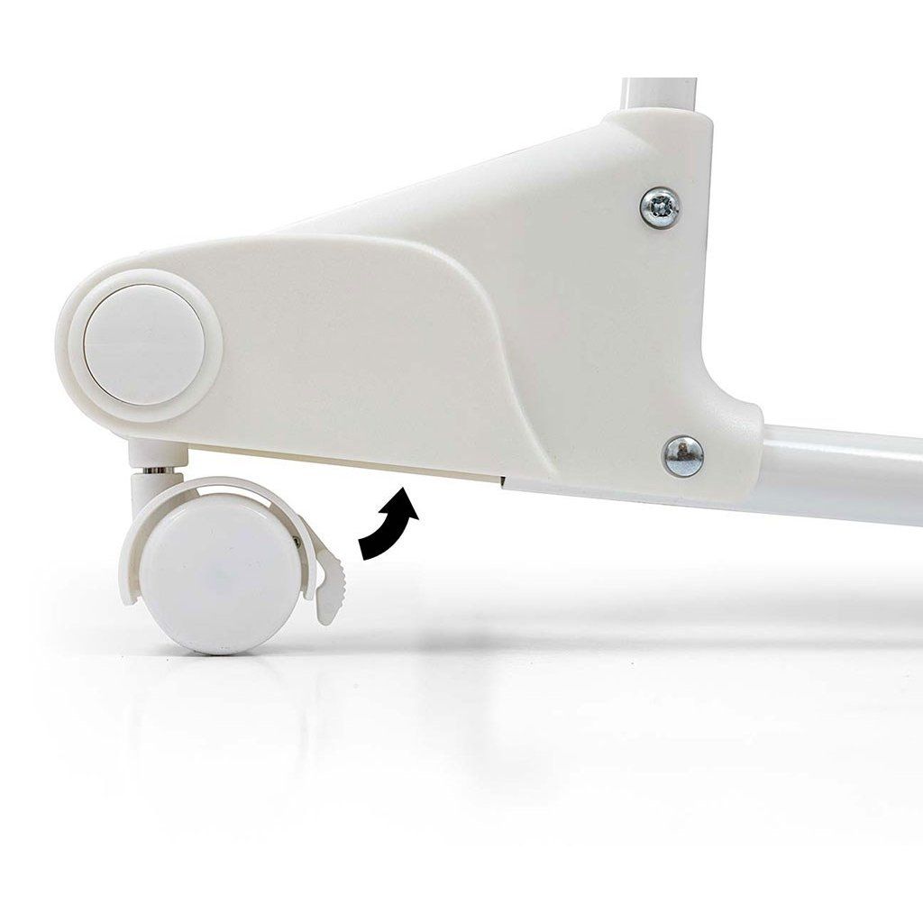 Pro změnu funkce z postýlky na kolébku je třeba zatáhnout za každé kolečko a otočit jím.