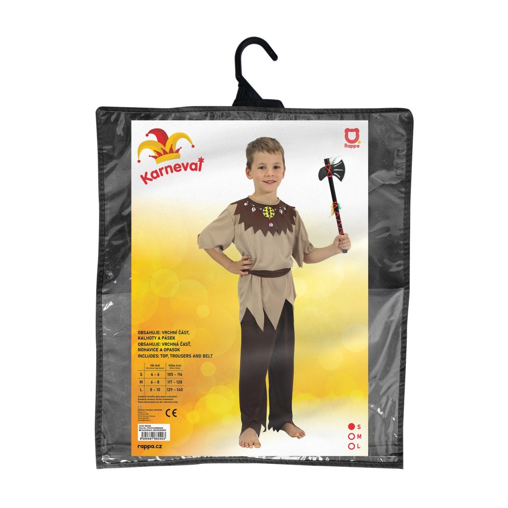 Stylový karnevalový kostým v motivu indiána! Kostým hnědé barvy ve velikosti S je určen pro kluky ve věkovém rozmezí 4-6 let 105-116cm. Staň se největší hvězdou karnevalu! Sekera není součástí balení.Doplňkové parametry