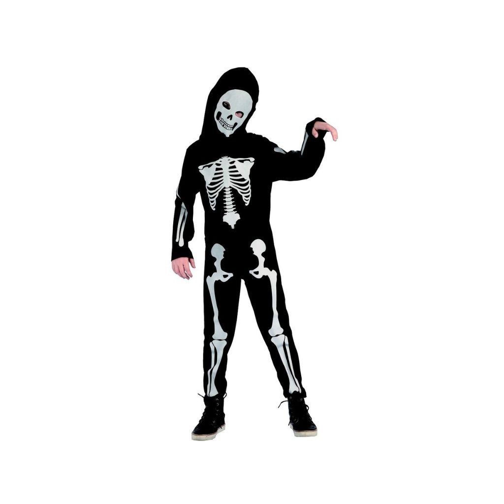 Karnevalový kostým Kostra je skvělou volbou pro děti, které milují tajemné a strašidelné kostýmy. Je určen pro výšku 120–130 cm cca 5–9 let. Kostým obsahuje černou kombinézu s potiskem kostry a kuklu, která dotváří celý děsivý vzhled. Díky pohodlnému materiálu se dobře nosí a umožňuje volný pohyb při hrách či tancování. Ideální pro karneval, Halloween, školní párty nebo tematické oslavy. Boty nejsou součástí balení.Doplňkové parametry