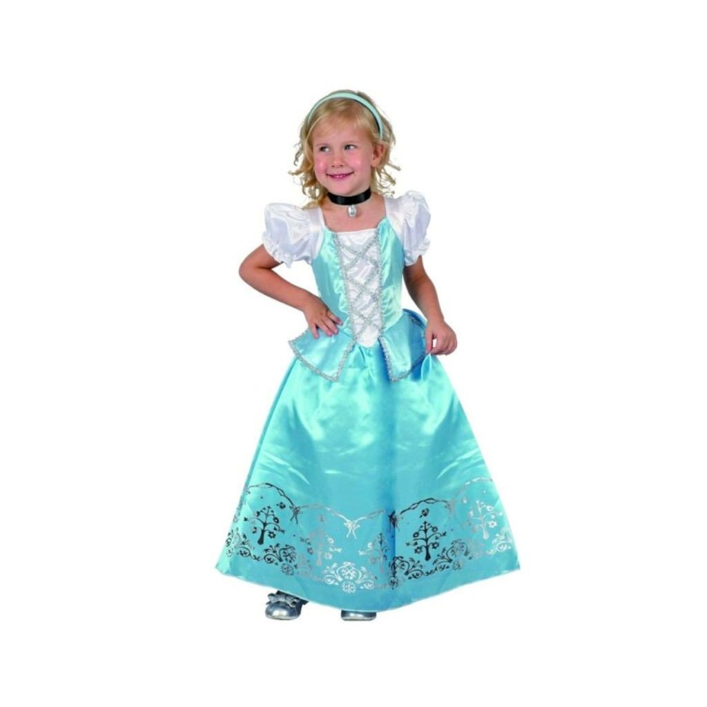 Karnevalový kostým princezny pro malé děti, vhodný pro karnevaly a dětské oslavy. Balení obsahuje šaty, čelenku a náhrdelník. Určeno pro děti ve věku 3-4 let o výšce 92–104 cm.