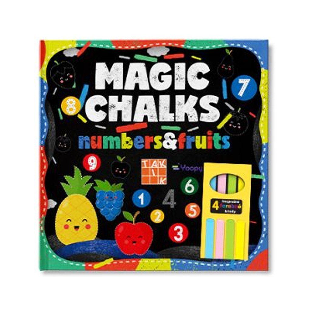 Kouzelné křídy - Čísla a ovoce, přináší nový zážitek z kreslení! Všechny obrázky a jednoduché úkoly pro nejmenší jsou umístěny na tabulovém podkladu a připraveny pro nekonečné veselé vyplňování pomocí čtyř bezprašných barevných kříd, které jsou součástí balení. Rozsah je 14 stran. Cena je za kus. Vhodné pro děti ve věku 3+ let.Doplňkové parametry