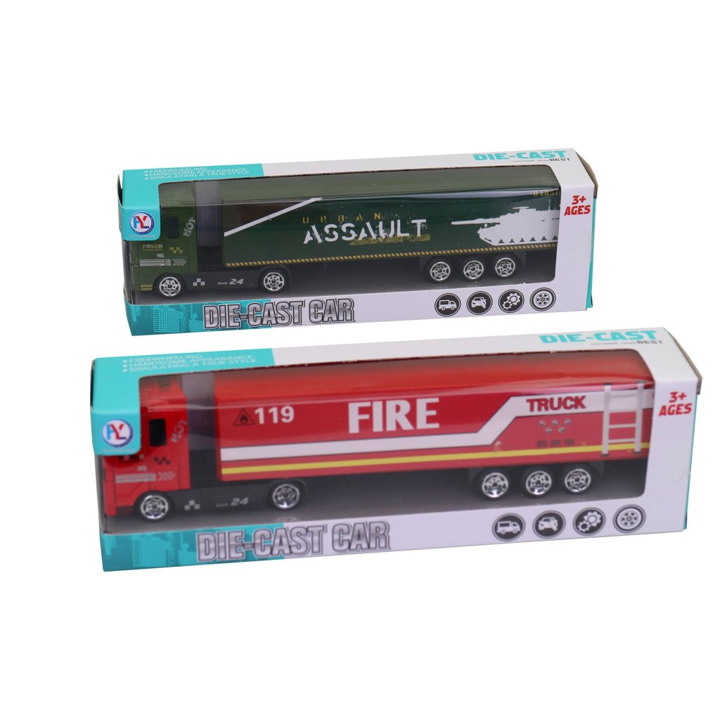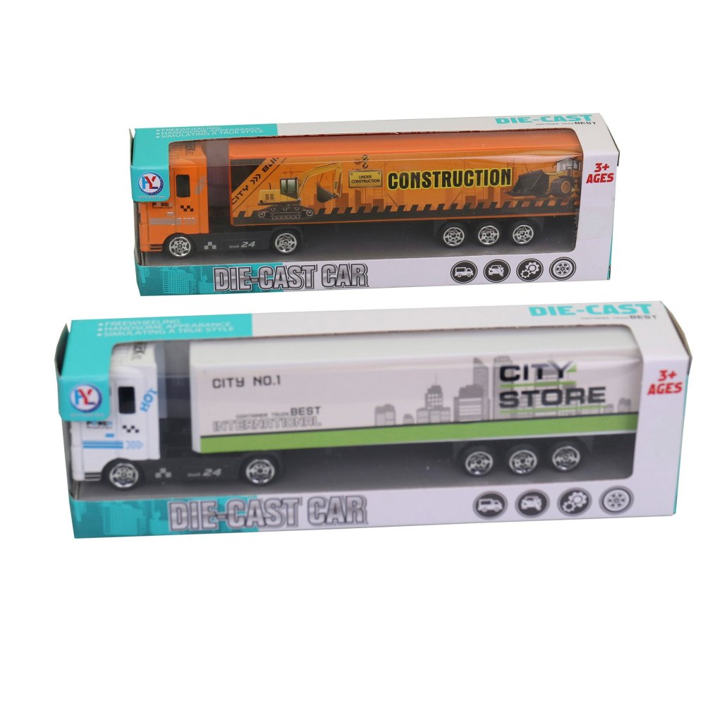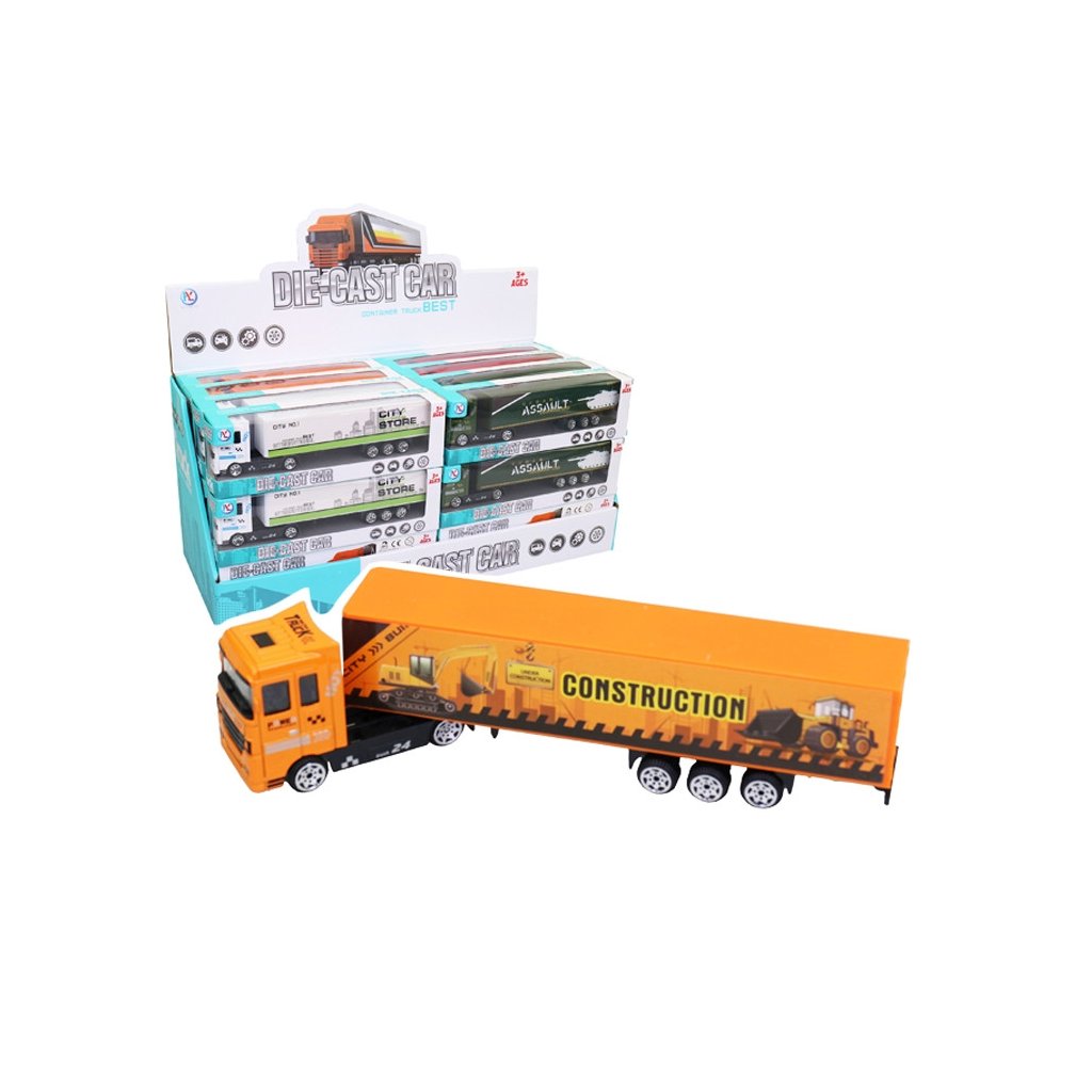Kovový kamion, na výběr ze čtyř variant. Baleno v boxu po 24 kusů. Cena je za 1 kus. Má rozměr 19 cm. Vhodné pro děti 3+.