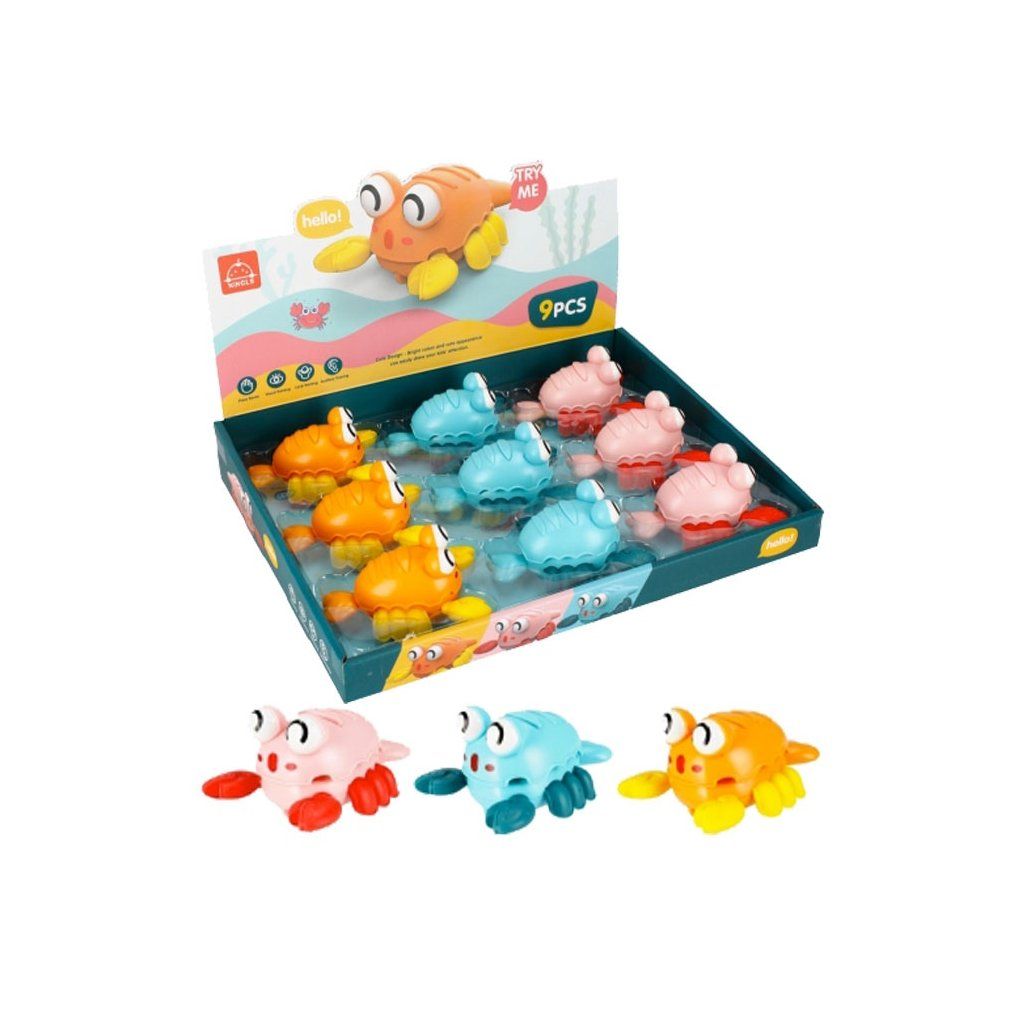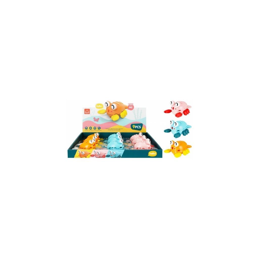 Má mechanismus, stisknutím Kraba na zádech se posune dopředu. Obsah soupravy krab 12 cm je dostupný ve třech barvách: růžová, akvamarínová a oranžová.Rozměry kraba 12 cm.