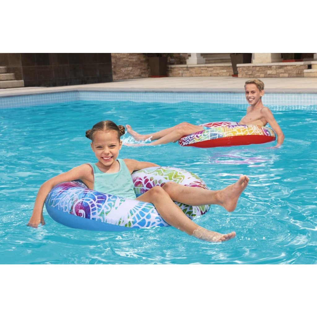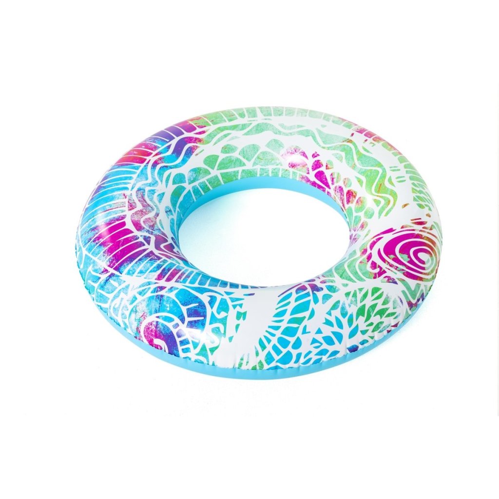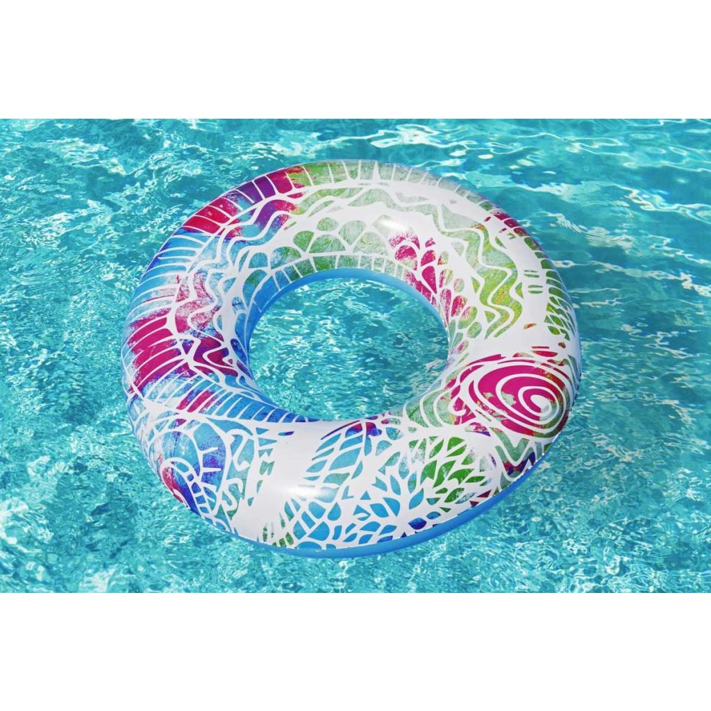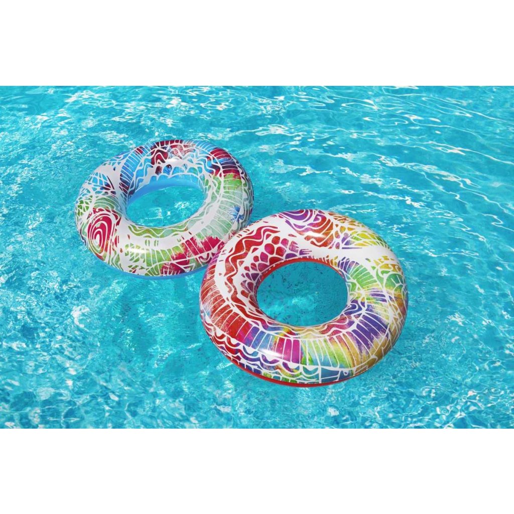 Nafukovací plovací kruh Bestway 36084 Summer Swim o průměru 91 cm je ideální volbou pro děti od 10 let i dospělé, kteří si chtějí užít relaxaci a zábavu ve vodě. Vyrobený z odolného vinylu o tloušťce 0,22 mm, tento kruh zajišťuje dlouhou životnost a spolehlivost při používání.Kruh je vybaven dvěma pevnými madly pro lepší úchop a stabilitu během plavání. Stylový design s barevným mandalovým potiskem přitahuje pozornost a dodává produktu atraktivní vzhled. Po nafouknutí má kruh rozměry přibližně 80 × 80 × 19 cm, což poskytuje dostatek prostoru pro pohodlné sezení nebo ležení na vodní hladině. Díky své skladnosti a nízké hmotnosti je kruh snadno přenosný, což z něj činí skvělého společníka na dovolenou, k bazénu nebo na pláž. Jeho univerzální využití a atraktivní design z něj činí oblíbený doplněk pro letní vodní radovánky.Doplňkové parametry