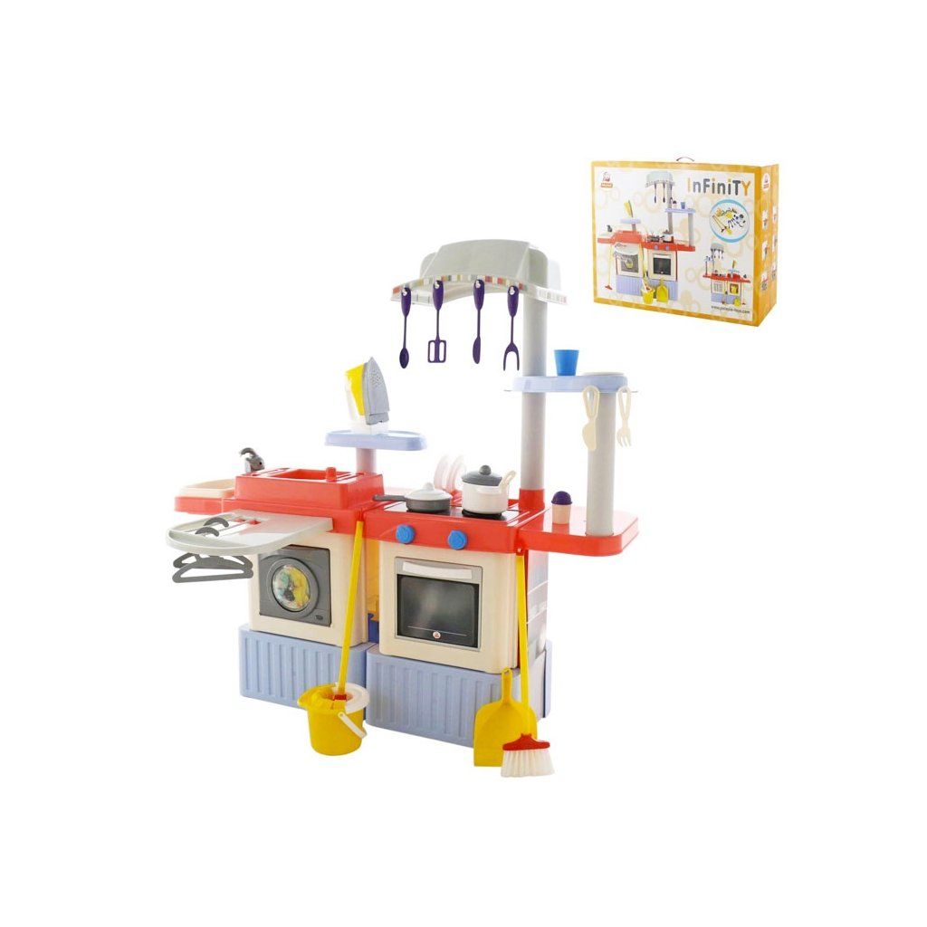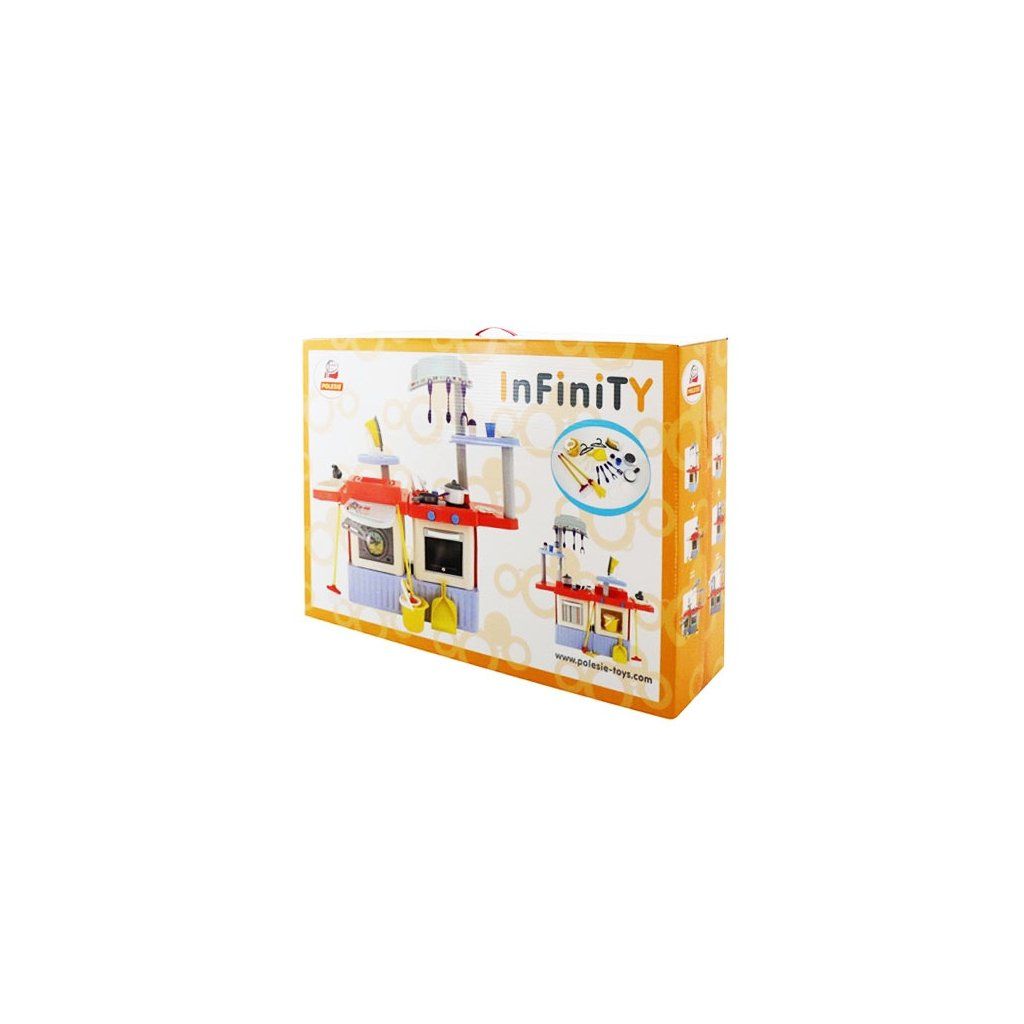 Kuchyňka Infinity Premium je balena v krabici 87 x 60 cm velké. Sestává s kuchyňské části a části s pračkou, umyvadlem a žehlícím pultíkem. obě často můžeme použít i samostatně. V balení jsou také všechny vyobrazené doplňky. Kuchyňka je 100 cm vysoká s pracovní deskou ve výšce cca 50 cm.Doplňkové parametry