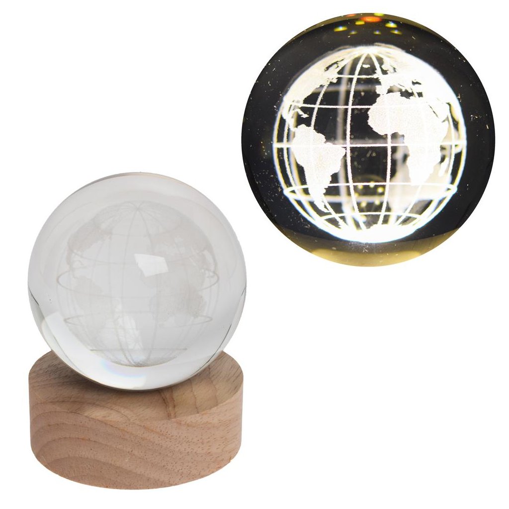 LED GUĽA SKLO NA DREV.PODSTAVCI S PODSVIETENÍM ZEMEGUĽA 8*10CM
