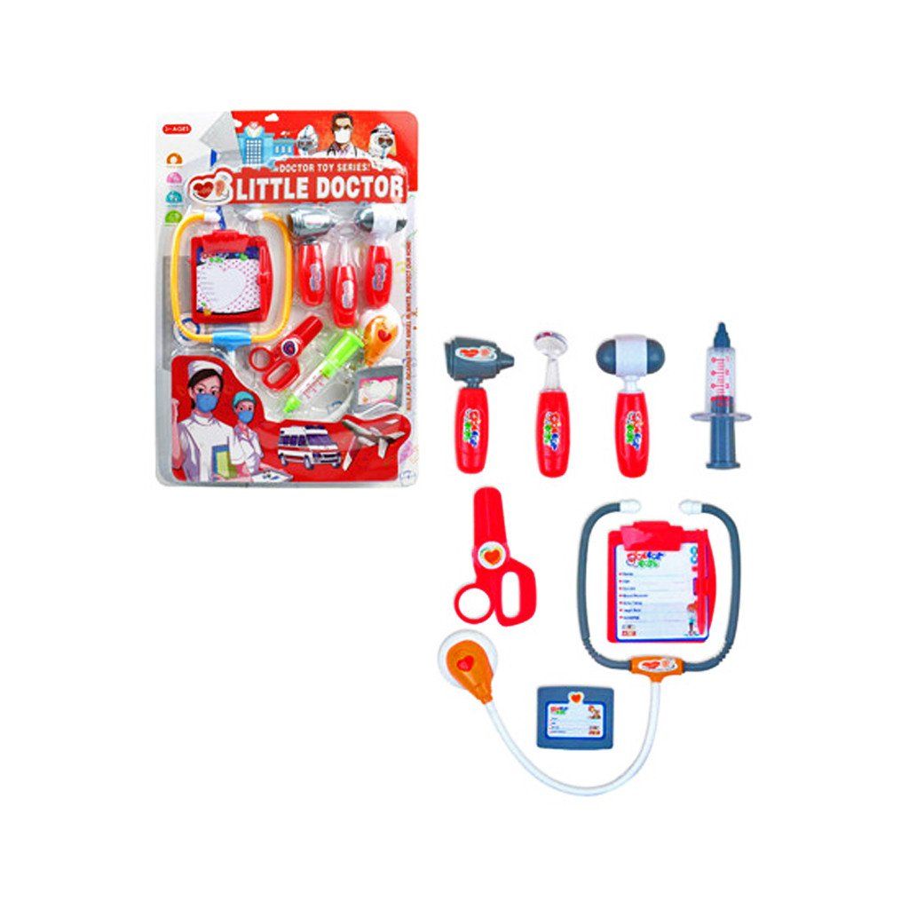 Lékařská souprava, v balení je fonendoskop, 2 kladívka, zubařské zrcadlo, stříkačka, nůžky, vizitka a zápisník. Cena je za balení. Vhodné pro děti 3+.