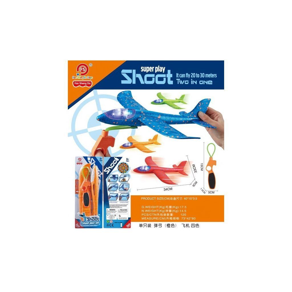 Vystřelovací letadlo se světelnými efekty nabízí akční zábavu při odpalování a sledování letu. Letadlo o rozměrech 34x9x33 cm je vybaveno světelnými efekty, které zvyšují atraktivitu hry zejména v šeru nebo interiéru. Součástí jsou 3x AG3 baterie, takže je připraveno k okamžitému použití. Dostupné ve více barvách. Cena za kus.Doplňkové parametry