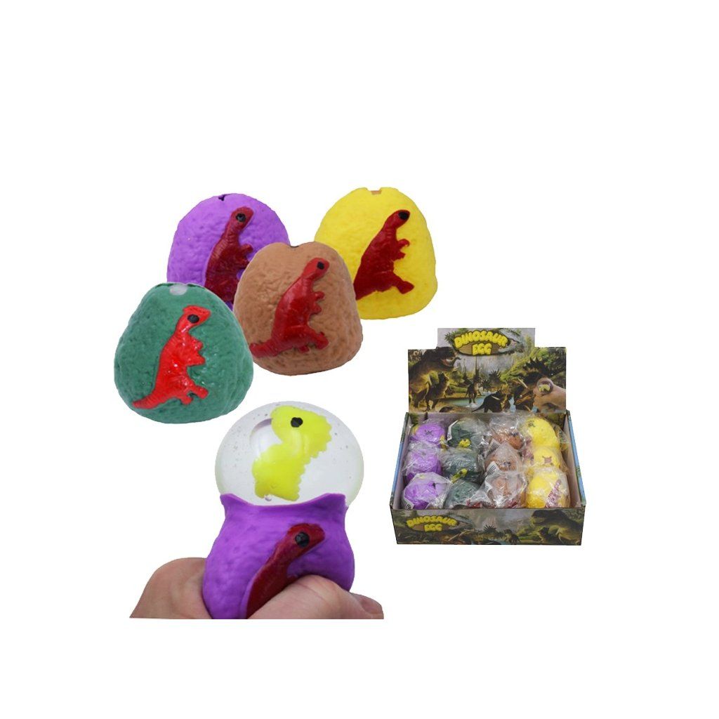 Mačkací 6cm dinosauří vajíčko. Po stlačení se z otvoru vytlačí sliz s malým dinem. Možnost výběru ze čtyř barev – hnědé, žluté, fialové nebo zeleně. Nevhodné pro děti do 3 let.Doplňkové parametry
