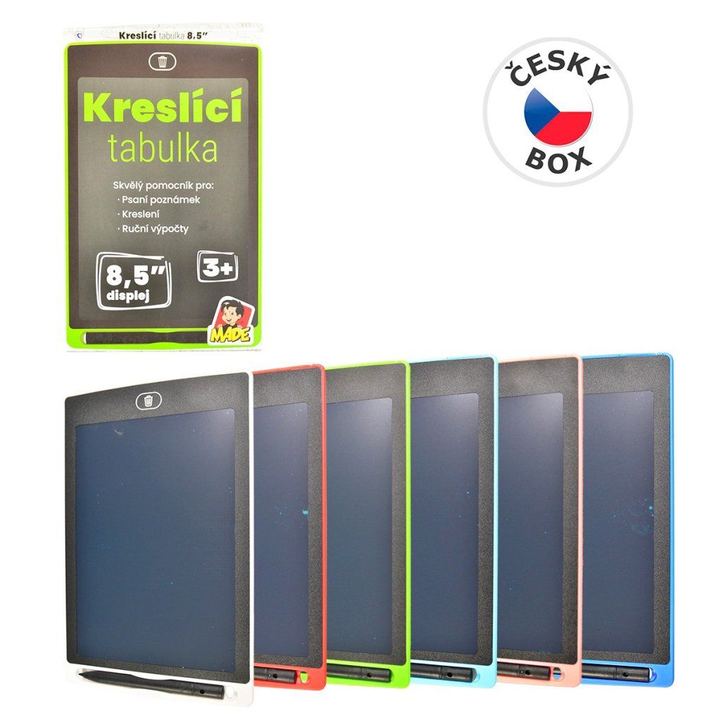 Tabulka kreslící má moderní design tabletu, je krásně tenoučká. Můžete jí hravě použít místo klasického papíru. K tabulce je přiloženo psací pero. Vše co napíšete, namalujete, b smažete jedním stisknutím tlačítkab a máte tabulku nachystanou k dalšímu použití. br Rozměr 23 x 15 x 1 cm. Napájení LR2025 baterie.Doporučený věk 3 +Doplňkové parametry