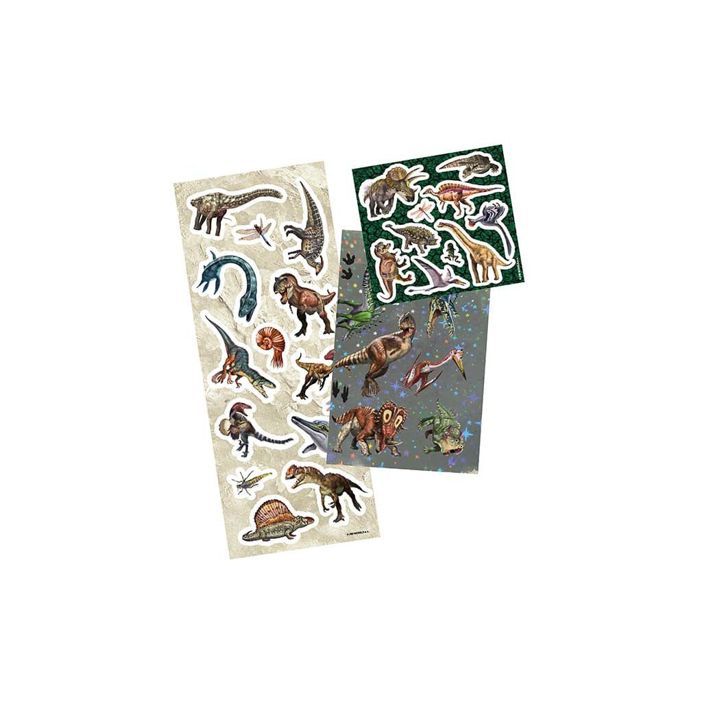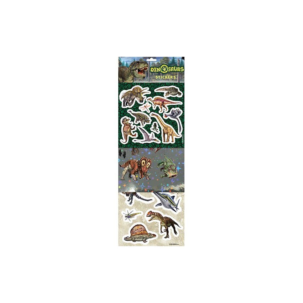 Malé samolepky Dinosauři, set obsahuje list klasických papírových samolepek, list samolepek s fóliovým efektem a list samolepek s barevnými glitry.Doplňkové parametry