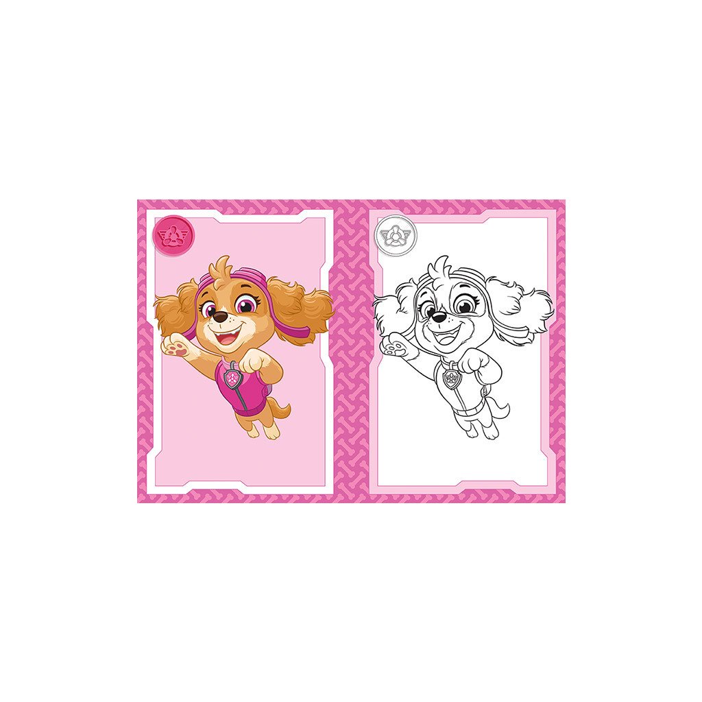 Omalovánky A5 Tlapková patrola Dívky, obsahují 9 černobílých obrázků k vybarvení a 9 barevných předloh. Mají rozměry 210 X 150 mm. Vhodné pro děti ve věku 3+ let.Doplňkové parametry