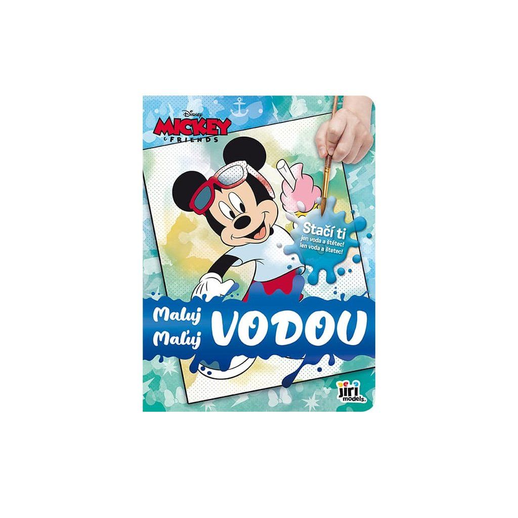 Maluj vodou Mickey, omalovánky obsahují 8 kouzelných obrázků, k jejichž vybarvení stačí dětem pouze štětec a pár kapek vody. Stránky obsahují barevné tečky, které po rozetření obrázek přebarví. Má rozměry 265 X 195 X 1,7 mm.Doplňkové parametry