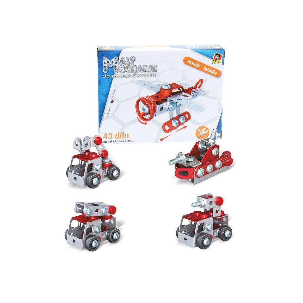 Malý mechanik - hasiči, 6ks v display boxu Hračka je určena pro děti 8+. Rozměr hračky je 14,5x11x2,5cm. Materiál hračky je kov. Balení hračky je box.Cena za kus. Na výběr několik variant, prodává se assort.
