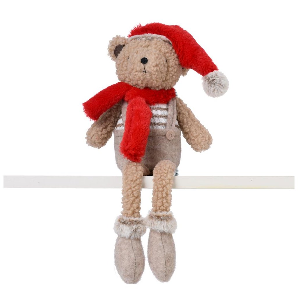 MEDVEĎ SEDIACI BÉŽ ,ČER ČIAPKA, ŠÁL TEXTIL 16*12*22/60CM