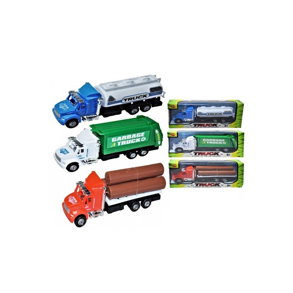 Minitruck technické stroje. Možnost výběru ze tří druhů - auto se dřevem, cisterna nebo kontejner. Rozměry stroje jsou 16,5 x 6cm. Cena je za 1 kus. Nevhodné pro děti do 3 let.Doplňkové parametry
