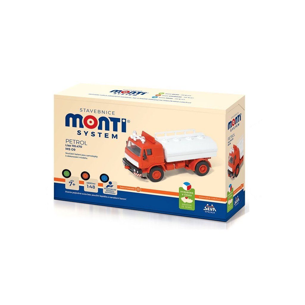 Monti System MS 09 - Petrol Modely z řady STANDARD jsou více detailnější a tím pádem obsahují více dílků. Počet dílků se pohybuje přibližně kolem 50. I přesto jsou modely řady STANDARD stále jednoduché na složení a zvládnou je sestavit děti od 6 let. Auta se vyrábí v měřítku 1:48.Doplňkové parametry