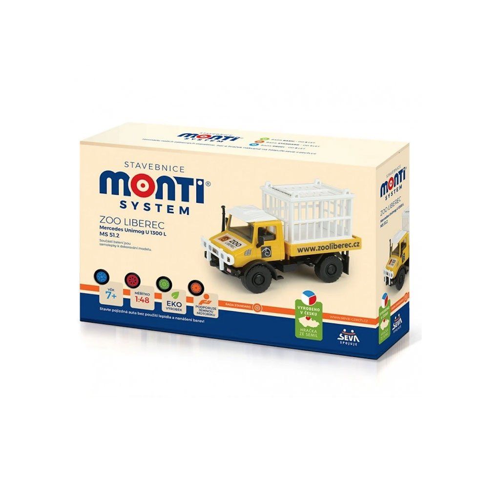 Největší výhodou těchto stavebnic je, že k sestavení modelu autíčka nepotřebujete žádné lepidlo a barvy. Jednotlivé dílky jsou tak důmyslně vyrobeny, že s pomocí různých zacvakávacích zámků, úchytů a dalších pružných mechanismů sestavíte model bez jediné kapky lepidla. Vše do sebe jen zacvaknete nebo zasunete. Výsledkem je funkční model s úžasnými detaily, který je dokonalou replikou skutečné předlohy. Jednotlivé dílky jsou lisovány již barevné, takže nemusíte nic barvit. Navíc jsou některé dílky pochromované a u nových Monti Systémů mají některé stavebnice pro ještě realističtější vzhled gumová kola. V každém balení naleznete také samolepky, kterými si složený model můžete polepit. brbr Modely z řady BASIC a STANDARD zvládnou sestavit děti od 6 let. Monti System s označením PROFI je stavebnice s větším počtem dílků a jeho sestavení zabere více času. Tyto modely jsou určeny pro děti od 8 let. Monti System je oceněná, poctivá a kvalitní česká stavebnice, kterou uděláte radost nejen svým dětem, ale určitě i dospělým. Z nabídky si bez pochyby vybere každý fanda autíček. Nabízíme šíroky sortiment, ze kterého si můžete postavit závodní nebo vojenský speciál, autobus, ambulanci, hasiče, policii, přepravní kamiony, tahače, cisterny, nákladní auta a další úžasné modely propracované do posledního detailu. brbr Všechny námi vyrobené hračky jsou pravidelně testovány renomovanou zkušebnou a splňují veškeré požadavky bezpečnosti a nezávadnosti podle normy EN71. Ani stavebnice Monti System neobsahuje nebezpečné ftaláty, není tedy důvod proč by měla chybět v některém dětském pokojíčku.Doplňkové parametry