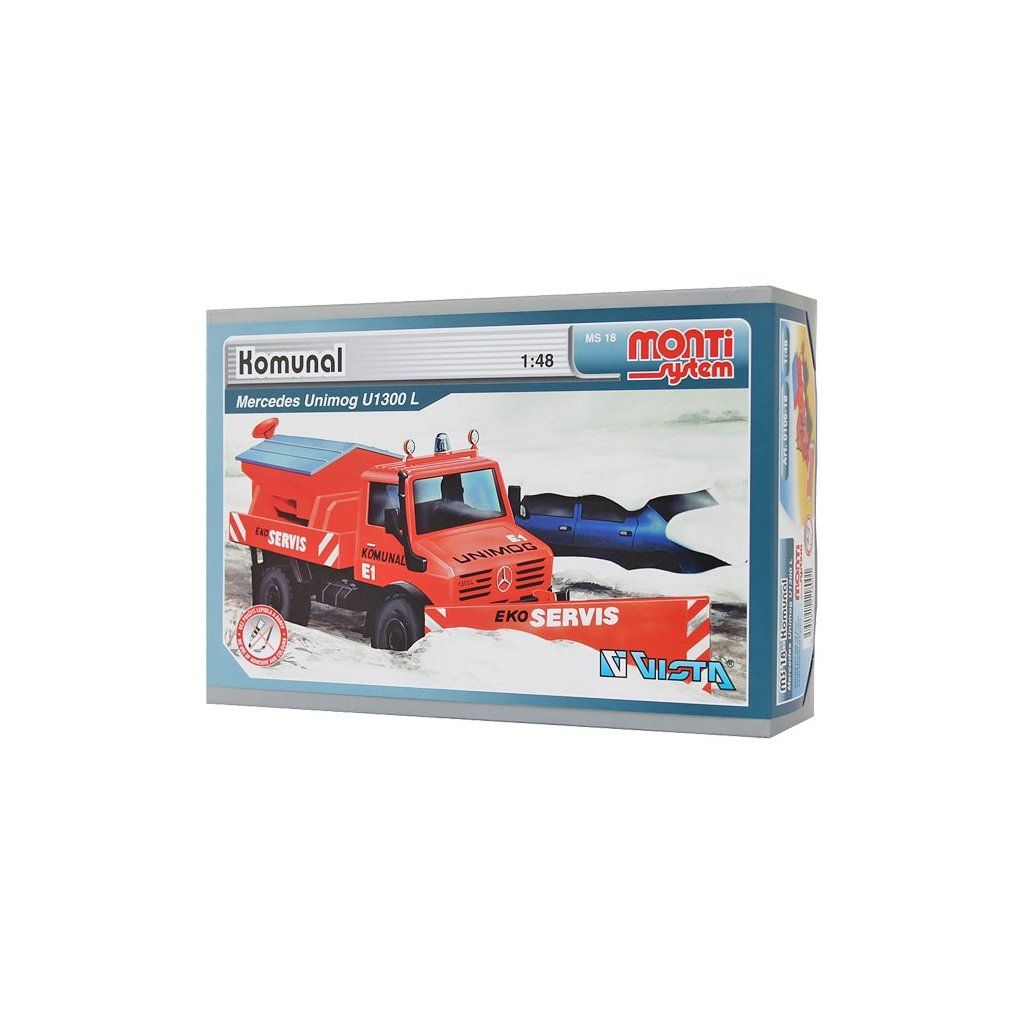 Monti System MS 18 - Komunal Mercedes Modely z řady STANDARD jsou více detailnější a tím pádem obsahují více dílků. Počet dílků se pohybuje přibližně kolem 50. I přesto jsou modely řady STANDARD stále jednoduché na složení a zvládnou je sestavit děti od 6 let. Auta se vyrábí v měřítku 1:48.Doplňkové parametry