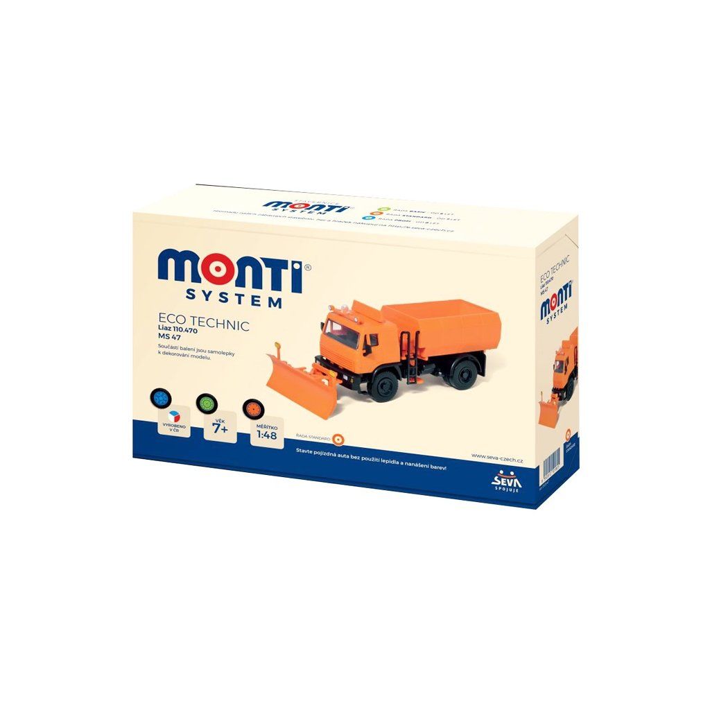 Největší výhodou těchto stavebnic je, že k sestavení modelu autíčka nepotřebujete žádné lepidlo a barvy. Jednotlivé dílky jsou tak důmyslně vyrobeny, že s pomocí různých zacvakávacích zámků, úchytů a dalších pružných mechanismů sestavíte model bez jediné kapky lepidla. Vše do sebe jen zacvaknete nebo zasunete. Výsledkem je funkční model s úžasnými detaily, který je dokonalou replikou skutečné předlohy. Jednotlivé dílky jsou lisovány již barevné, takže nemusíte nic barvit. Navíc jsou některé dílky pochromované a u nových Monti Systémů mají některé stavebnice pro ještě realističtější vzhled gumová kola. V každém balení naleznete také samolepky, kterými si složený model můžete polepit.Modely z řady BASIC a STANDARD zvládnou sestavit děti od 6 let. Monti System s označením PROFI je stavebnice s větším počtem dílků a jeho sestavení zabere více času. Tyto modely jsou určeny pro děti od 8 let. Monti System je oceněná, poctivá a kvalitní česká stavebnice, kterou uděláte radost nejen svým dětem, ale určitě i dospělým. Z nabídky si bez pochyby vybere každý fanda autíček. Nabízíme šíroky sortiment, ze kterého si můžete postavit závodní nebo vojenský speciál, autobus, ambulanci, hasiče, policii, přepravní kamiony, tahače, cisterny, nákladní auta a další úžasné modely propracované do posledního detailu.