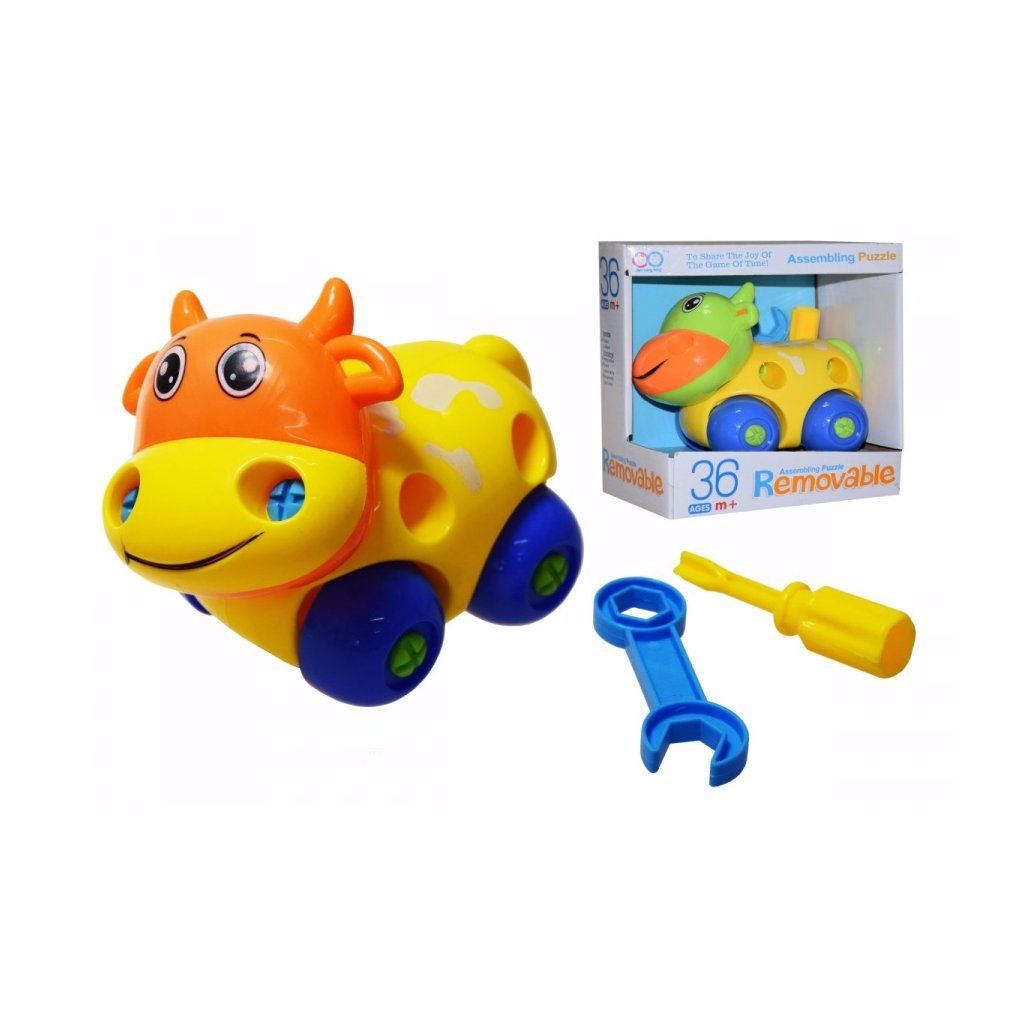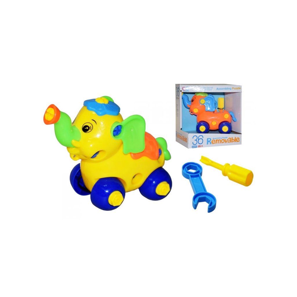 Barevné montovací zvířátko. Sada obsahuje zvířátko, klíč a šroubovák (dinosaurus pouze šroubovák). Vhodné na procvičení si jemné motoriky. Možnost výběru: slůně, želva, dinosaurus nebo kravička. Každé zvířátko je ve dvou barevných kombinacích. Nevhodné pro děti do 3 let.Doplňkové parametry