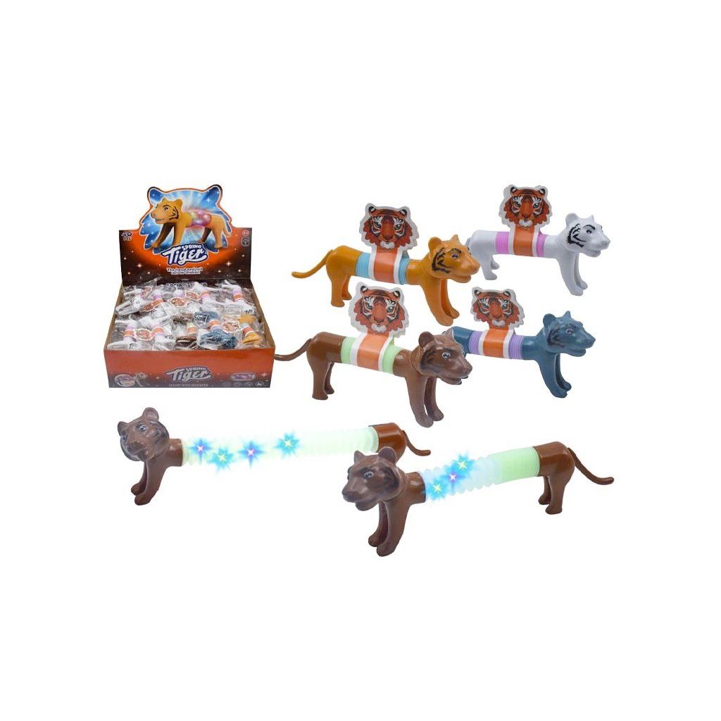 Natahovací 13cm tygr se světlem. Po jemném ťuknutí tygra se rozbliká jeho tělo. Možnost výběru ze čtyř barev – bílý, tmavě hnědý, hnědý nebo šedý. Nevhodné pro děti do 3 let. Cena za kus.Doplňkové parametry