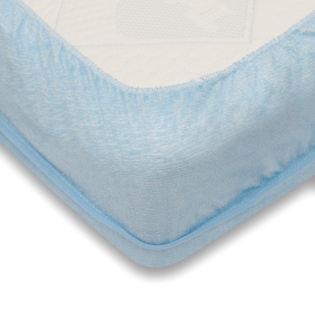 Froté prostěradlo s nepromokavou podložkou. Guma všitá po obvodu usnadňuje přizpůsobení k matraci. Rozměr 60x120 cm.