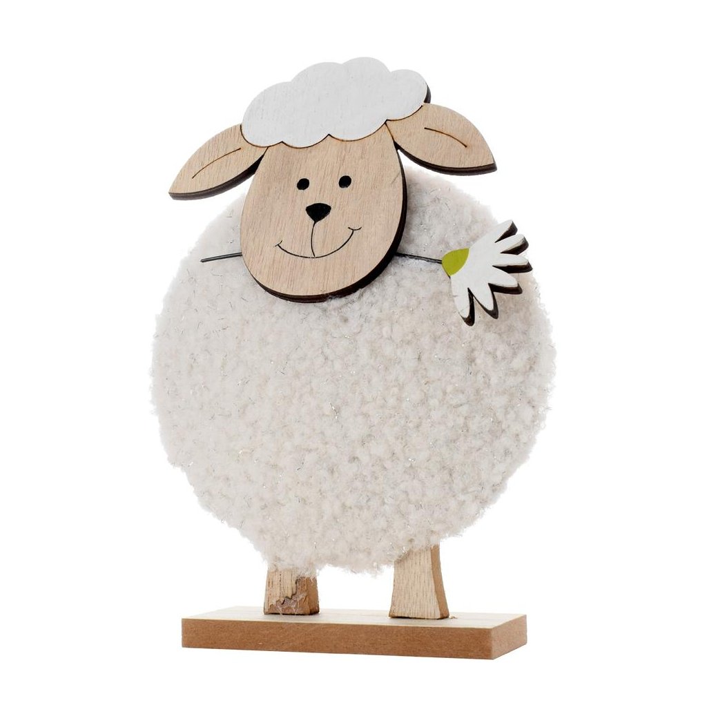 Cena za 1 ks: 76, OVEČKA BÍLÁ S KVĚTEM DŘEVO 13*4*19CM