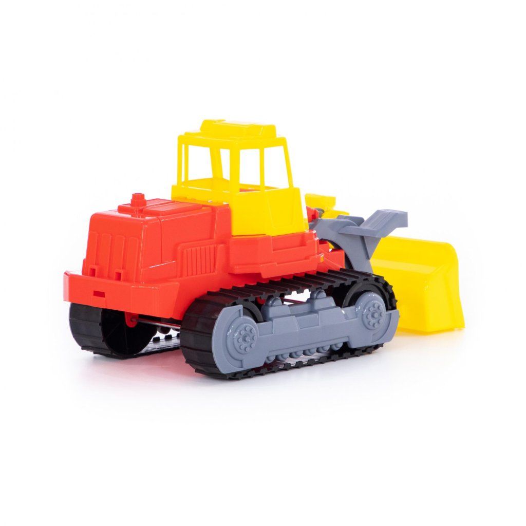 Pásový traktor s radlicí mechanicky pohyblivou, bez pohonu, vhodný na hru do interiéru i na písek, certifikovaný pro děti od 1 roku věku.Doplňkové parametry