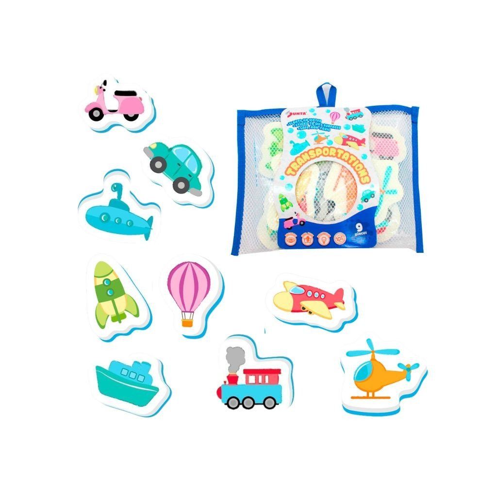 Pěnové hračky do vody s motivem dopravy obsahují 9 kusů barevných dílků, které po namočení přilnou na vaně nebo obkladačky a zpříjemní koupání každému dítěti, motivy dopravních prostředků podporují fantazii, učení tvarů a rozvoj jemné motoriky, měkký pěnový materiál je lehký, bezpečný a vhodný pro malé děti.Doplňkové parametry