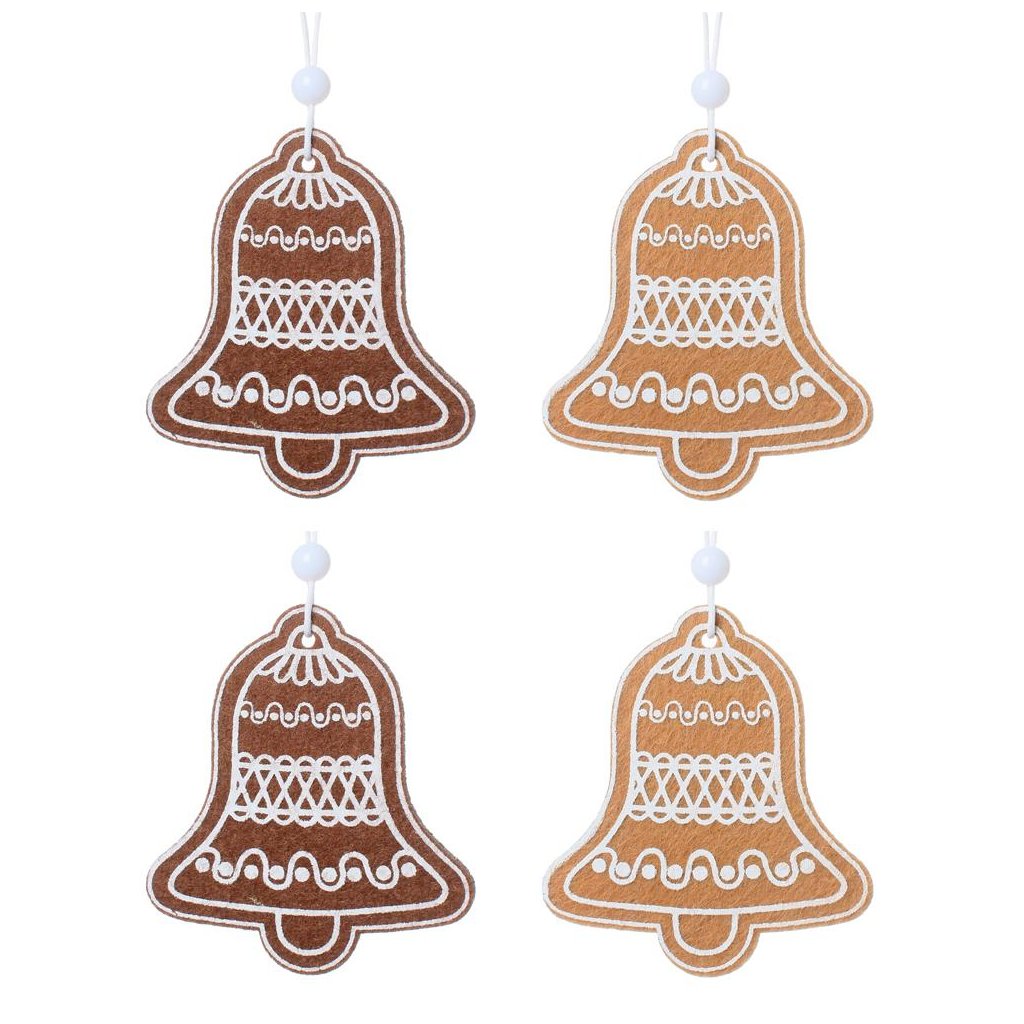 Cena za 1 ks: 32, PERNÍKOVÉ ZVONČ. TEXTIL HNEDÉ S/4 12*1.5*16cm