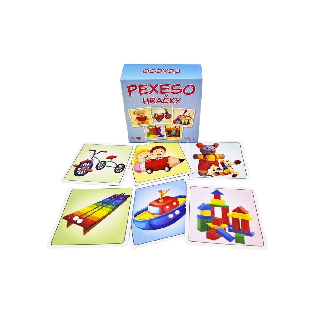 Pexeso Hračky je určena především dětem, ale také starším hráčům s velmi dobrou pamětí a postřehem. Pexeso je prakticky nastříhané v cestovní krabičce. Karty pexesa jsou nádherně ilustrovány a mají rozměr karty až 6,5cm. Balení obsahuje 64karet.Doplňkové parametry