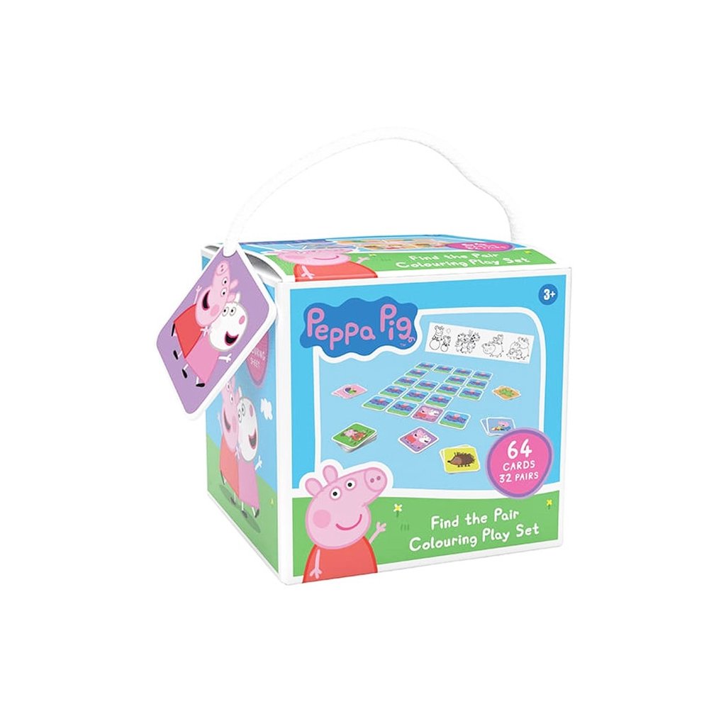Pexeso a cesty Peppa v praktické, snadno uzavíratelné a přenositelné krabičce. Obsahuje 64 kartiček v oblíbených motivech a složený omalovánkový list.
