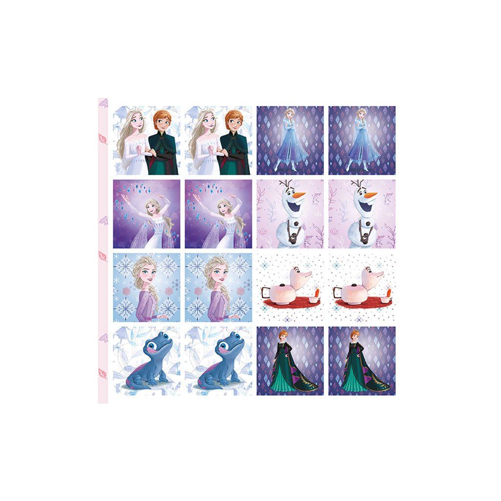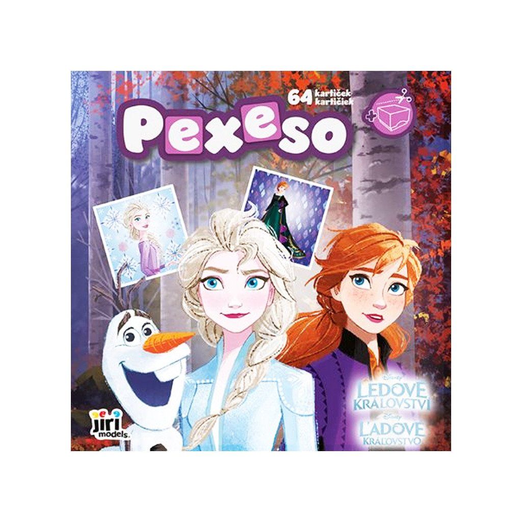 Pexeso v sešitě Ledové království, obsahuje 64 kartiček, krabici na vystřižení a složení a 4 listy na vybarvení. Rozměry sešitu jsou 21,5 cm x 21,5 cm. Vhodné pro děti 3+.