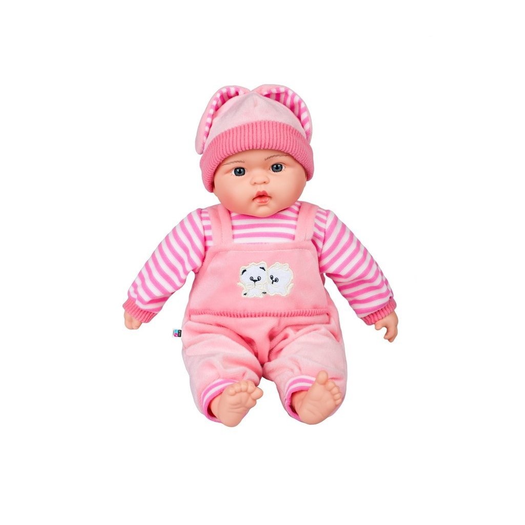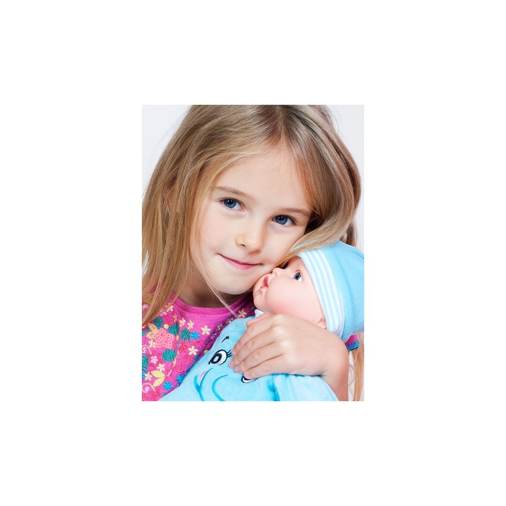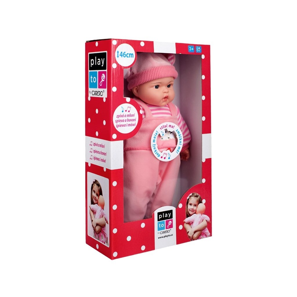 Dětská panenka PlayTo. Skvělá hračka pro každou holčičku. Hlava, ruce a nohy jsou vyrobeny z gumy, tělíčko pak z měkkého materiálu, díky čemuž se může dítě k panence krásně přitulit. Panenka má celou sadu oblečení, včetně botiček a čepičky. Oblečení lze sundat a vyprat. Panenka má krásnou, usměvavou tvář, barevné oči a řasy jako u živého miminka. Délka panenky 46 cm. Panenka má polský modul a mluví tyto polské věty: mamusiu, tatusiu, tatusiu weź mnie na rączki, mamusiu kocham cię a jiné. Panenka zpívá tyto polské písničky: Jadą jadą misie, Kosi kosi łapci, Miała baba koguta, Ta Dorotka, My jesteśmy krasnoludki.Doplňkové parametry