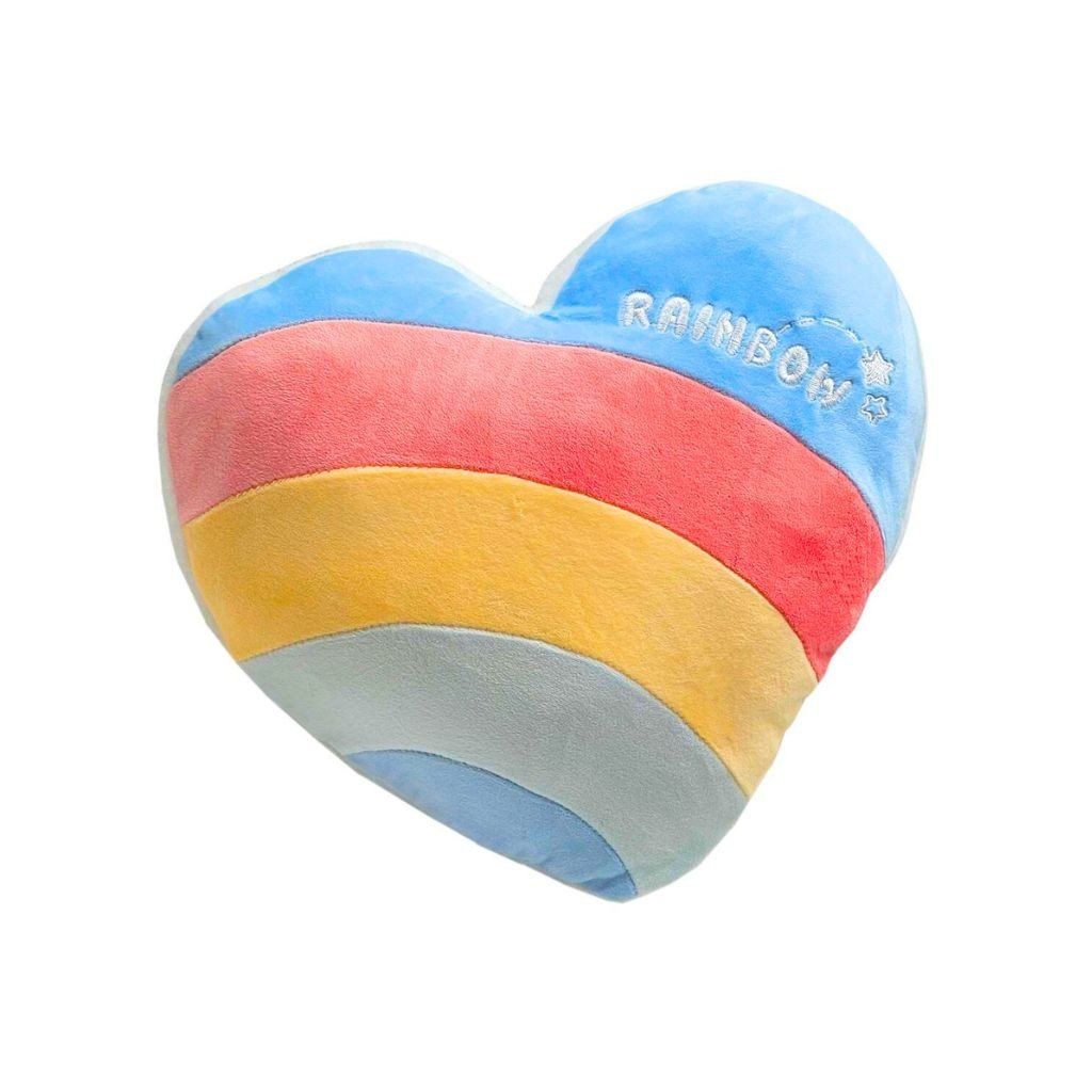 Měkký plyšový polštář ve tvaru duhového srdce je krásným doplňkem do dětského pokoje. Ideální na odpočinek i jako dekorace.