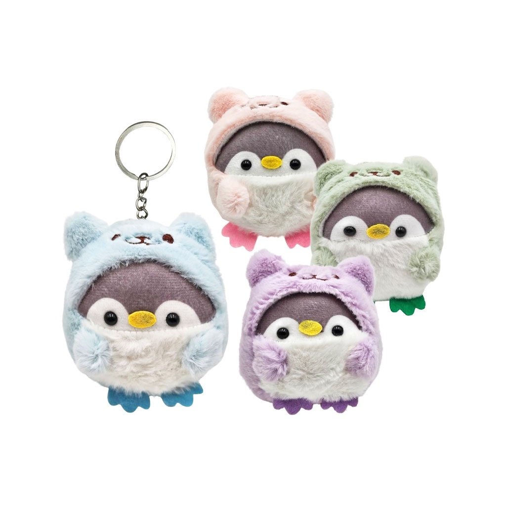 Plyšový 9cm přívěsek - tučňáček s výšivkou na kapuci. Možnost výběru ze čtyř barev – růžový, fialový, zelený nebo modrý. Cena za kus