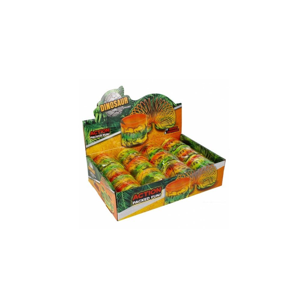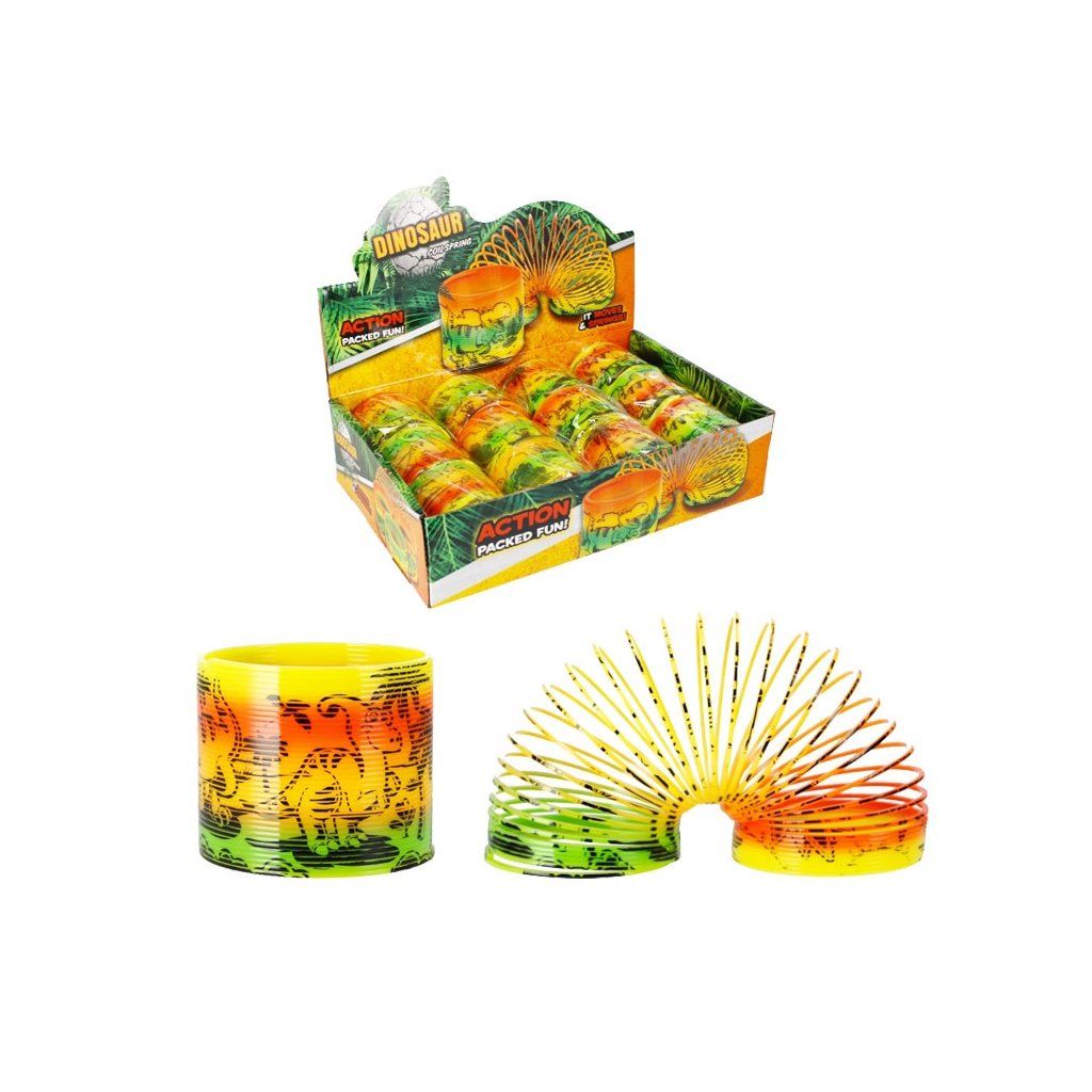 Velmi oblíbená hračka před mnoha lety je zpět. Pružinka s obrazem dinosaurů. Výrobek je vyroben z plastu. brRozměry produktu D x V x H cm 8x8x8. Výrobek je určen pro děti ve věku 3+.Doplňkové parametry