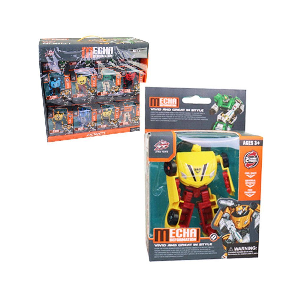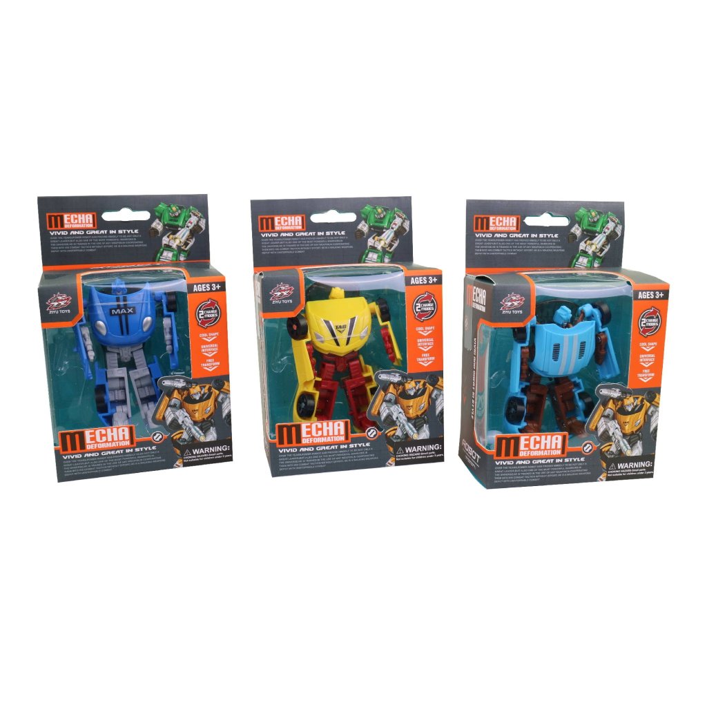 Robot měnící se na auto má rozměry 6,5x3,5x6 cm. Na výběr ze tří variant. Baleno v boxu po 24ks. Cena za 1 ks. Vhodné pro děti 3+.Doplňkové parametry