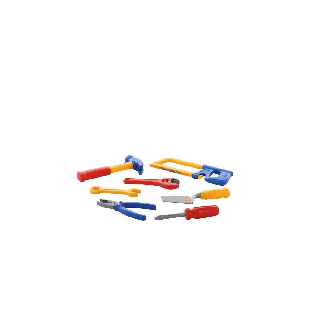 Sada nářadí 7 částí, v balení je pilka 27 cm dlouhá s pohyblivými zuby, kladivo 21 cm velké a další nářadí. Barevné provedení je dle aktuálního stavu na skladě.Doplňkové parametry